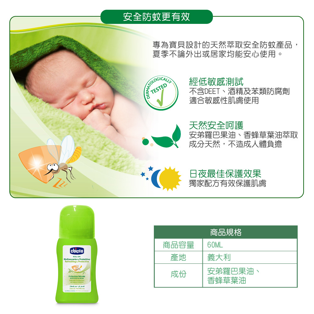 ★採用天然驅蚊配方安弟羅巴果油及香蜂草葉油,可達驅逐蚊蟲功效