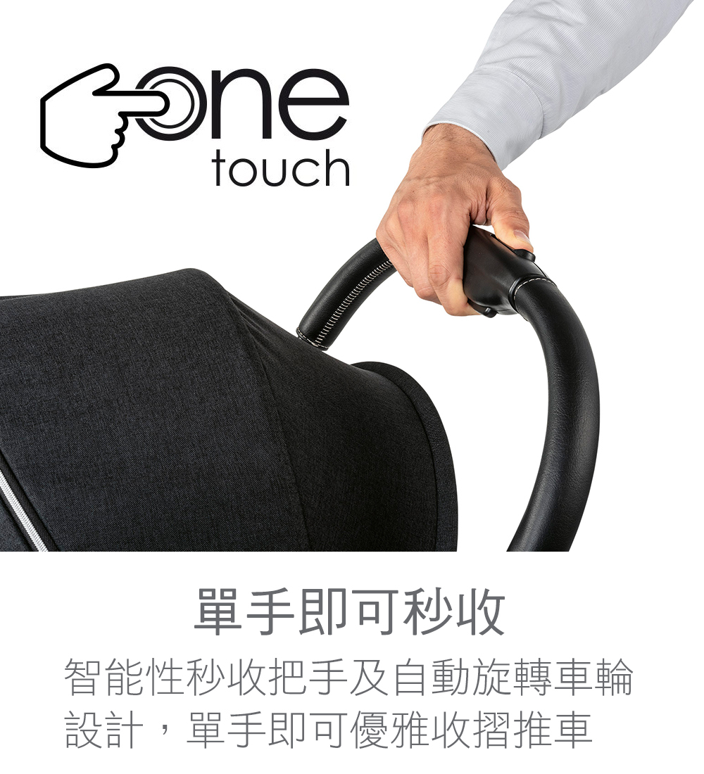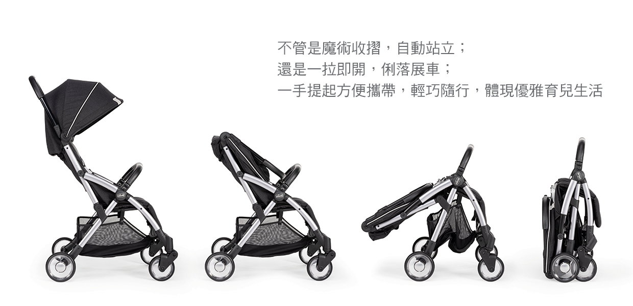就算抱著寶貝,不須彎腰,也能單手快速收摺,就像變魔術一樣!