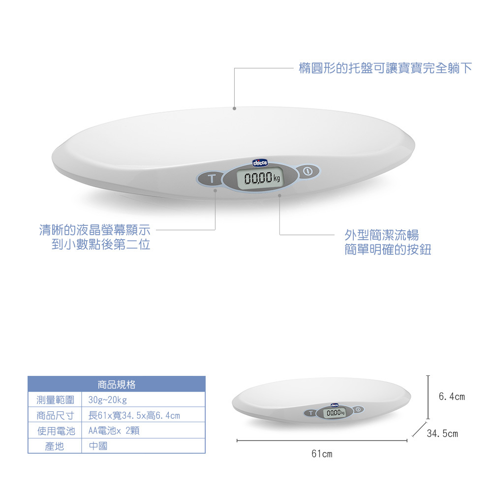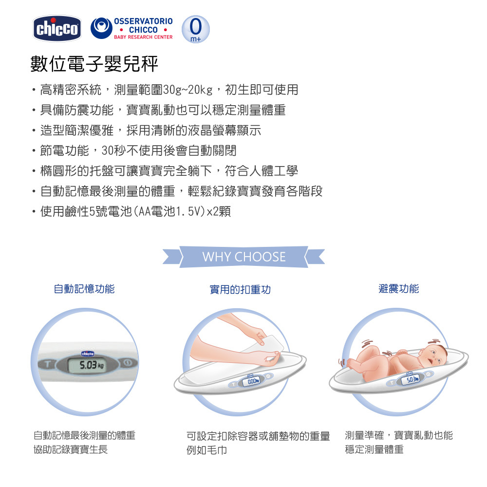 ★自動記憶最後測量的體重,輕鬆紀錄寶寶發育的各階段。採用液晶螢幕顯示,30秒不使用後會自動關閉