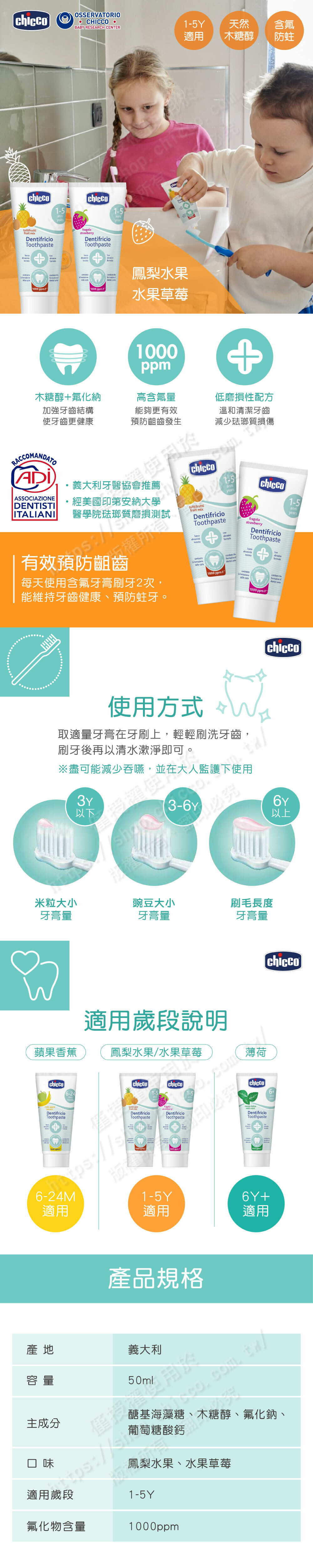 2.三歲以下幼童,請使用「米粒」大小的牙膏量;三至六歲的幼童,請使用一顆「豌豆」(0.25公克至0.5公克)的牙膏量。