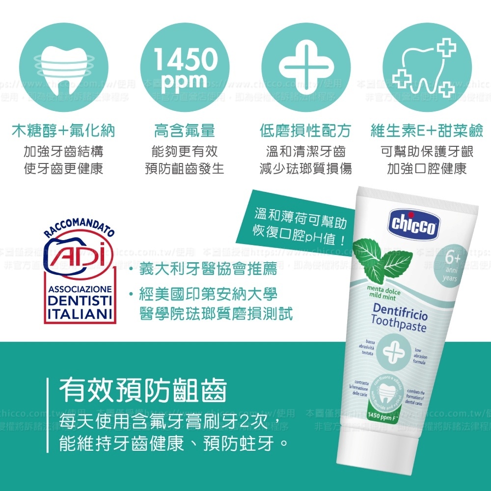 ★含有氟化納(1450PPM的氟),加強牙齒結構,使寶寶牙齒更健康