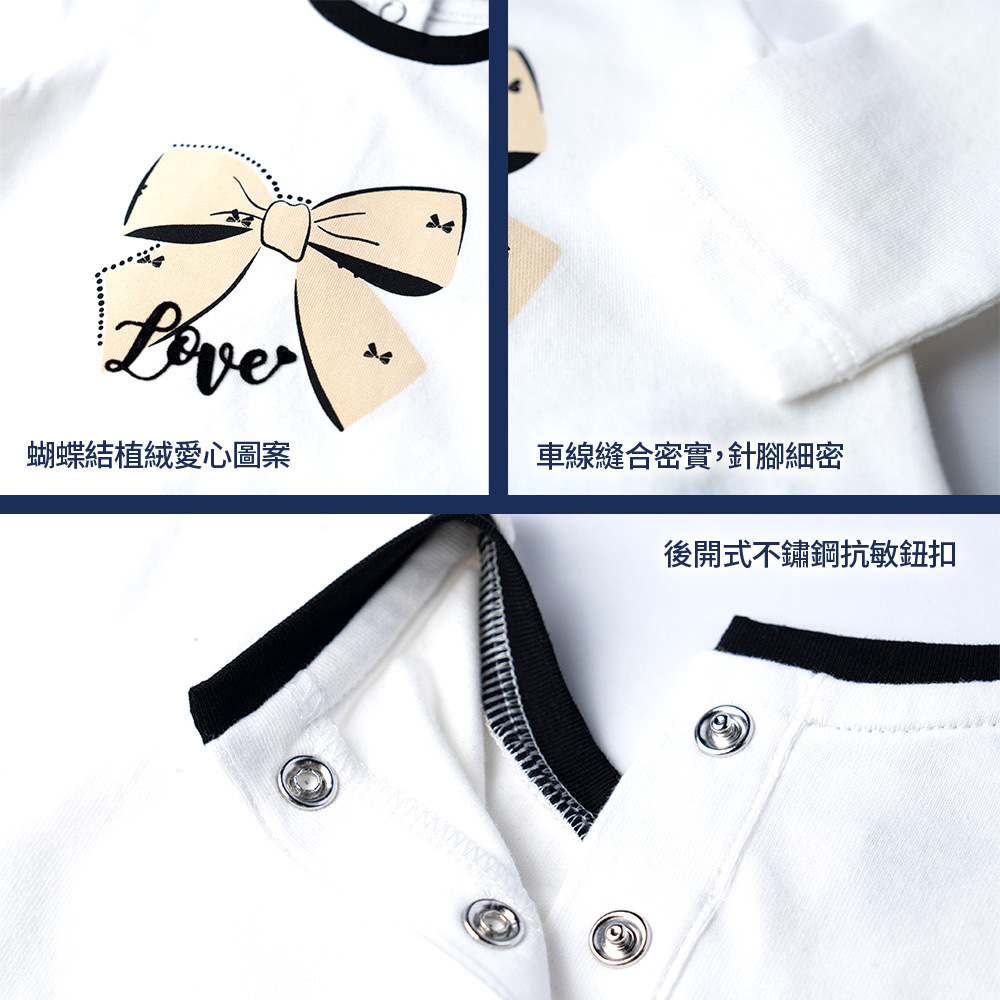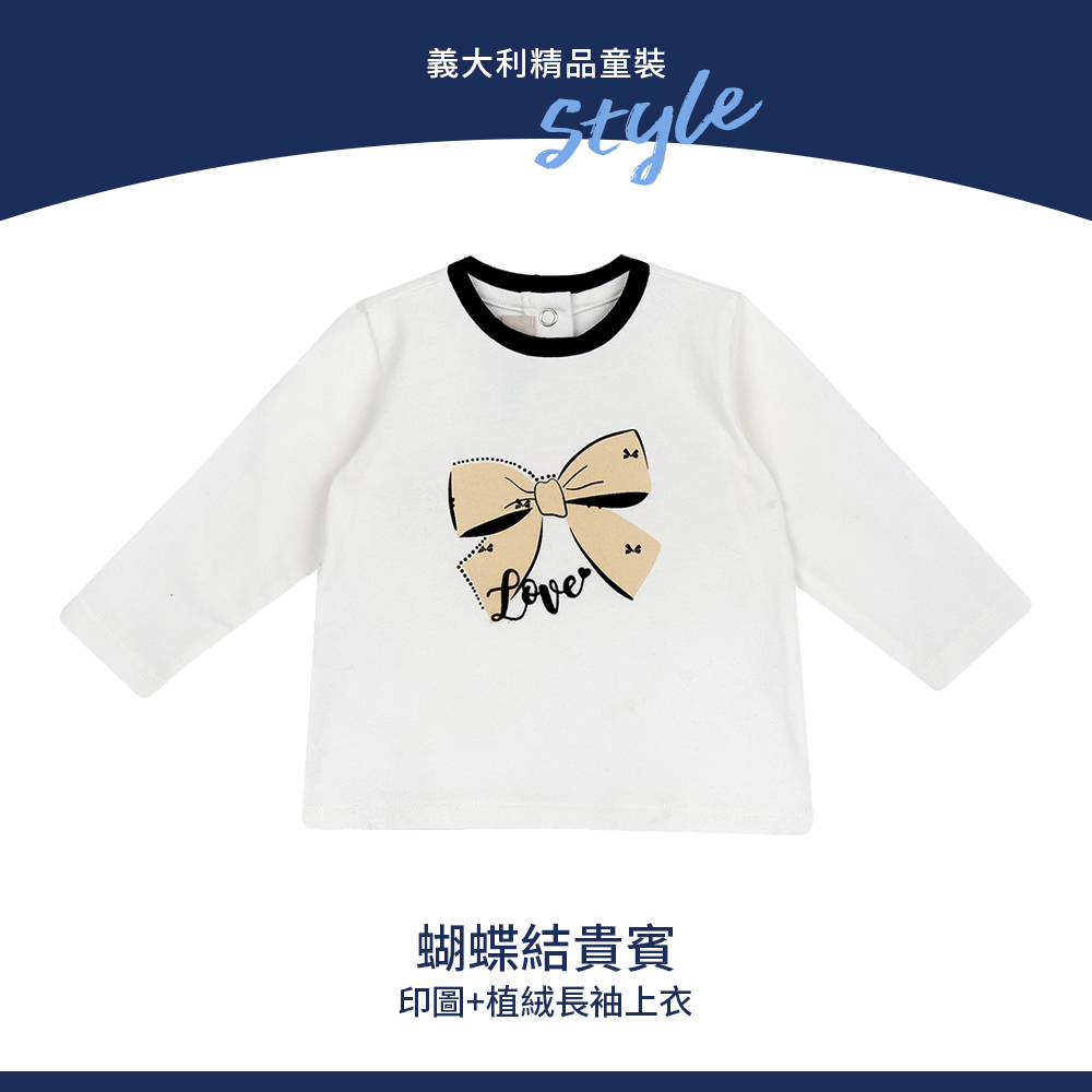 蝴蝶結貴賓-印圖+植絨長袖上衣
