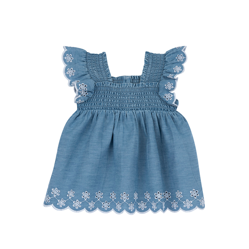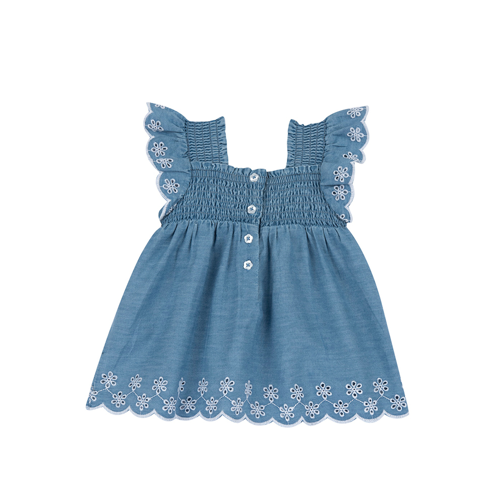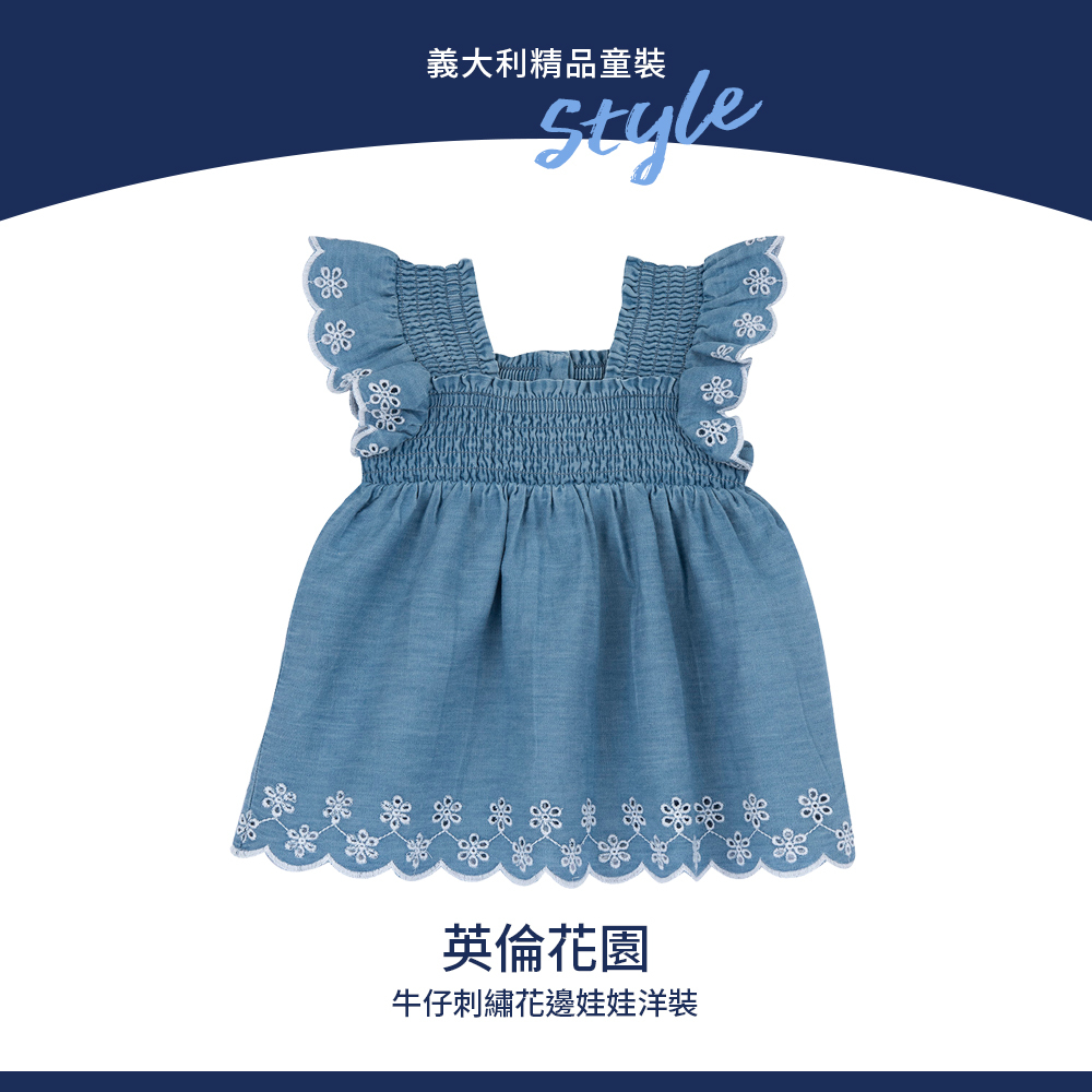 英倫花園-牛仔刺繡花邊娃娃洋裝