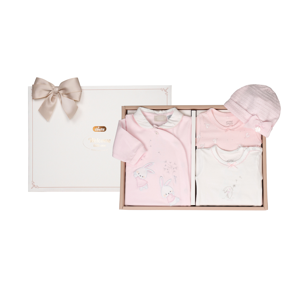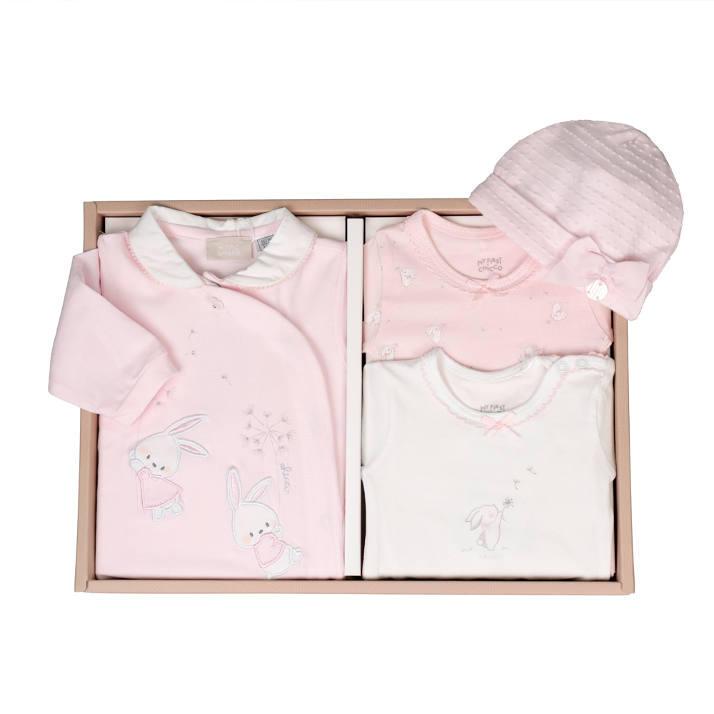 ●小兔花園長袖兔裝+帽子+連身衣彌月禮盒(四件組) | 56公分