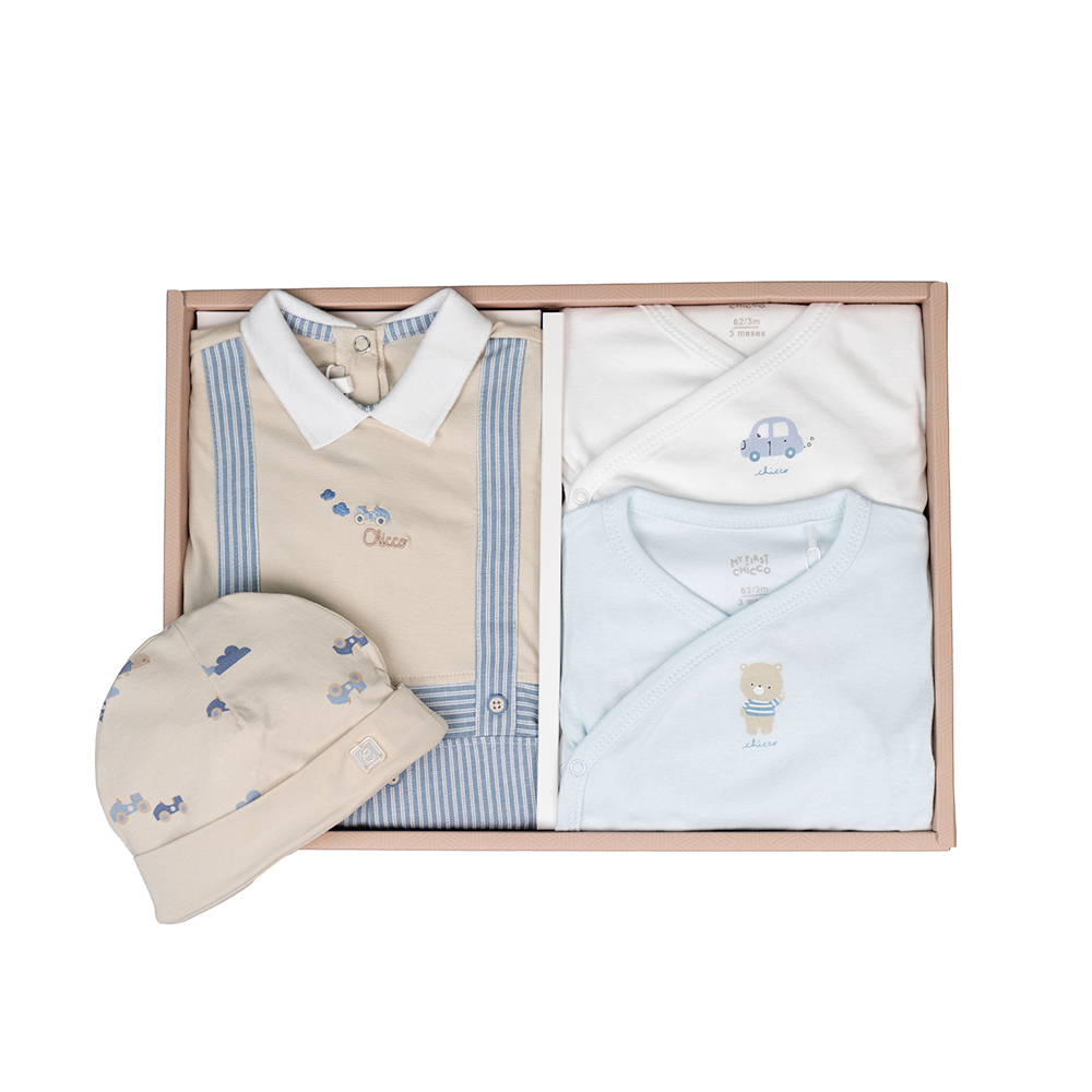 ●車車王國短袖兔裝+帽子+連身衣彌月禮盒(四件組)| 68公分