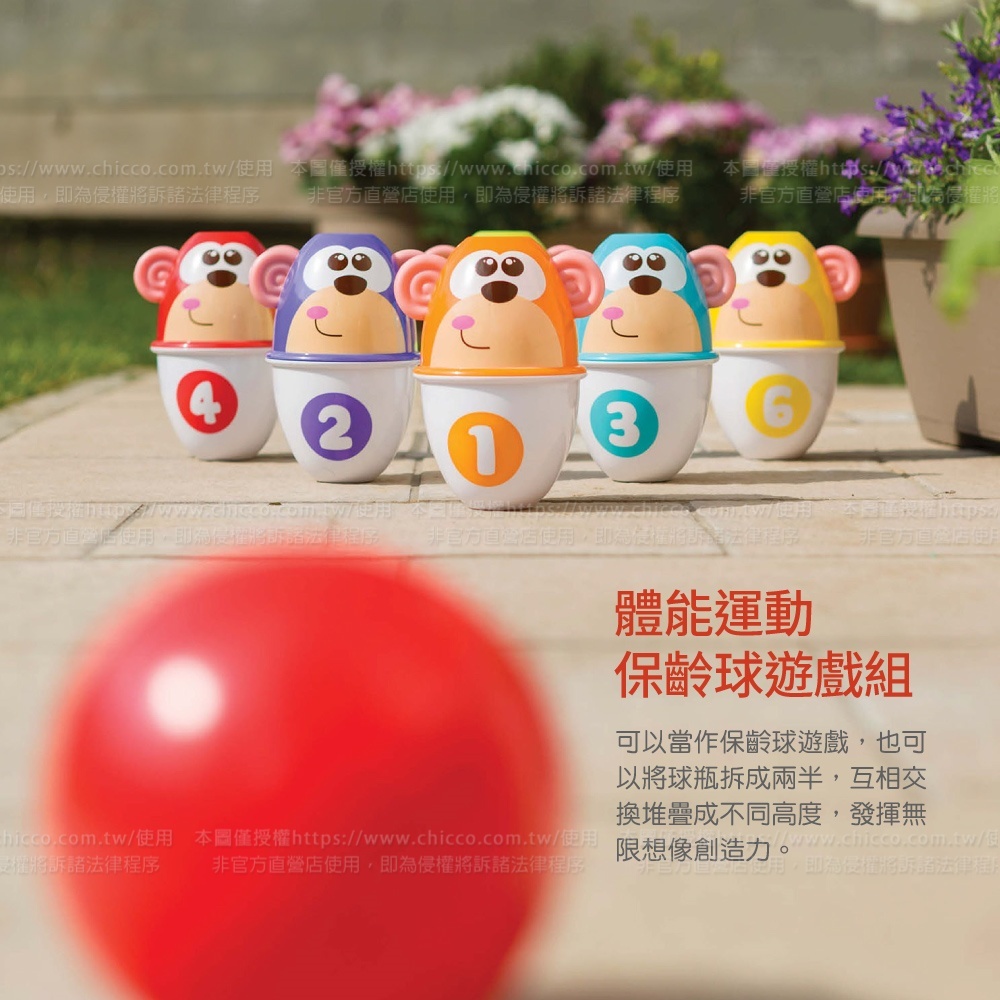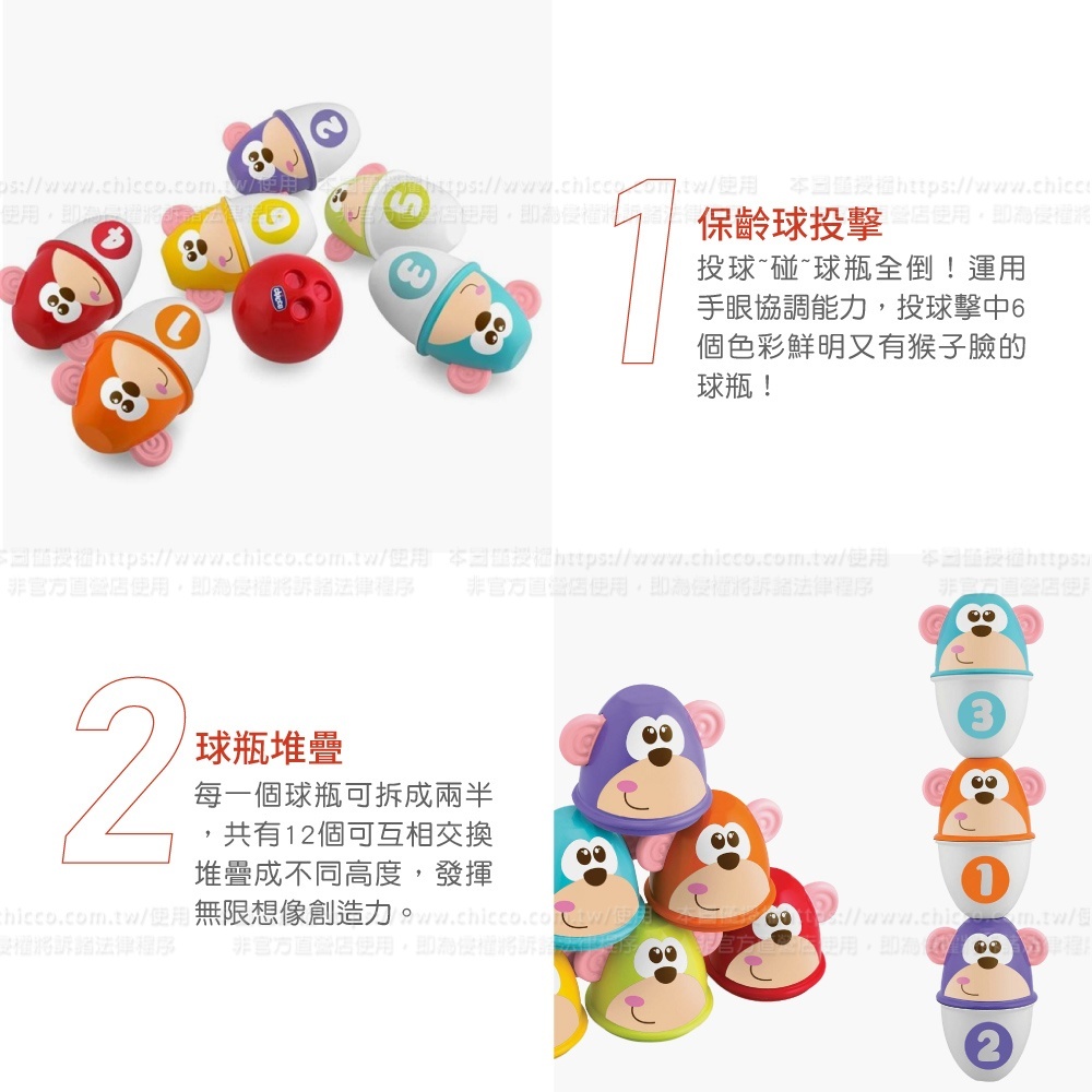 ●保齡球投擊-運用手眼協調能力,投球擊中6個色彩鮮明又有猴子臉的球瓶