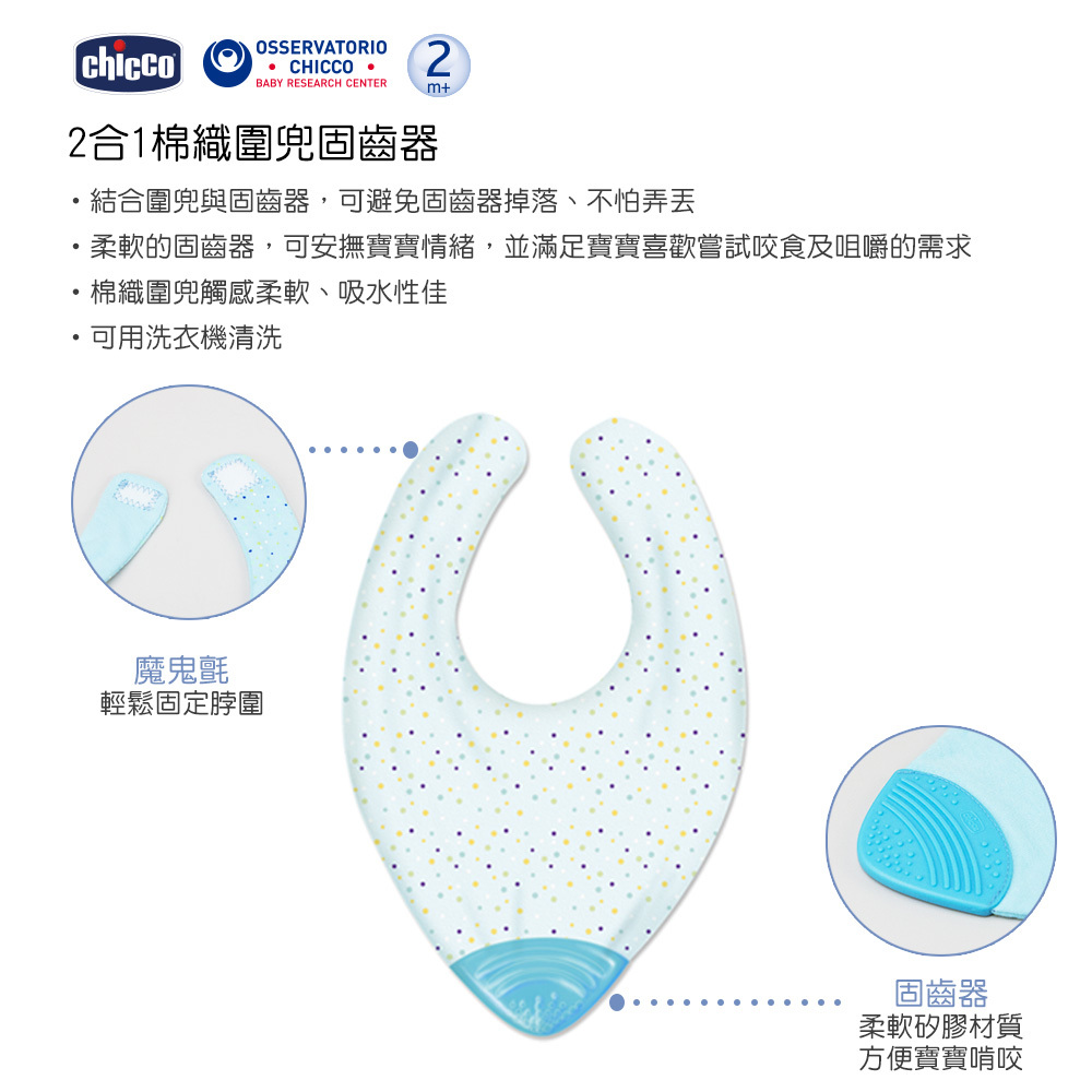 ★結合圍兜及固齒器,可避免固齒器掉落、不怕弄丟