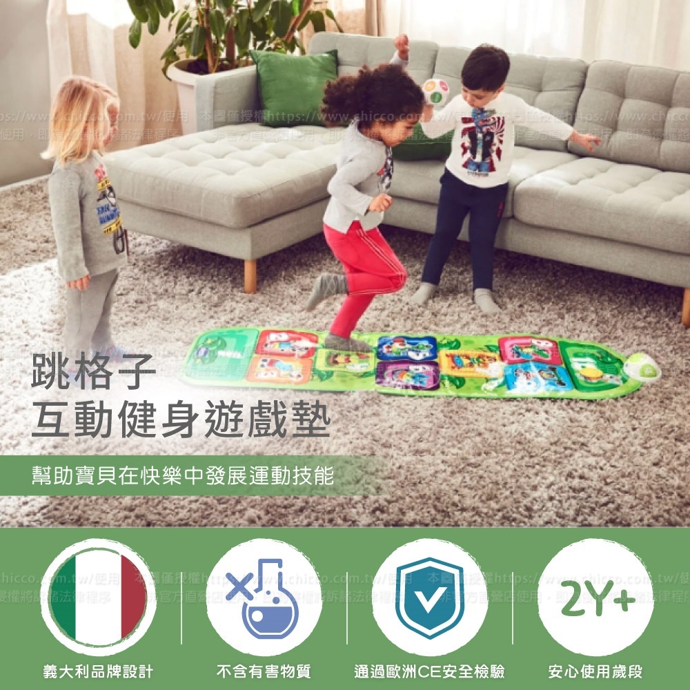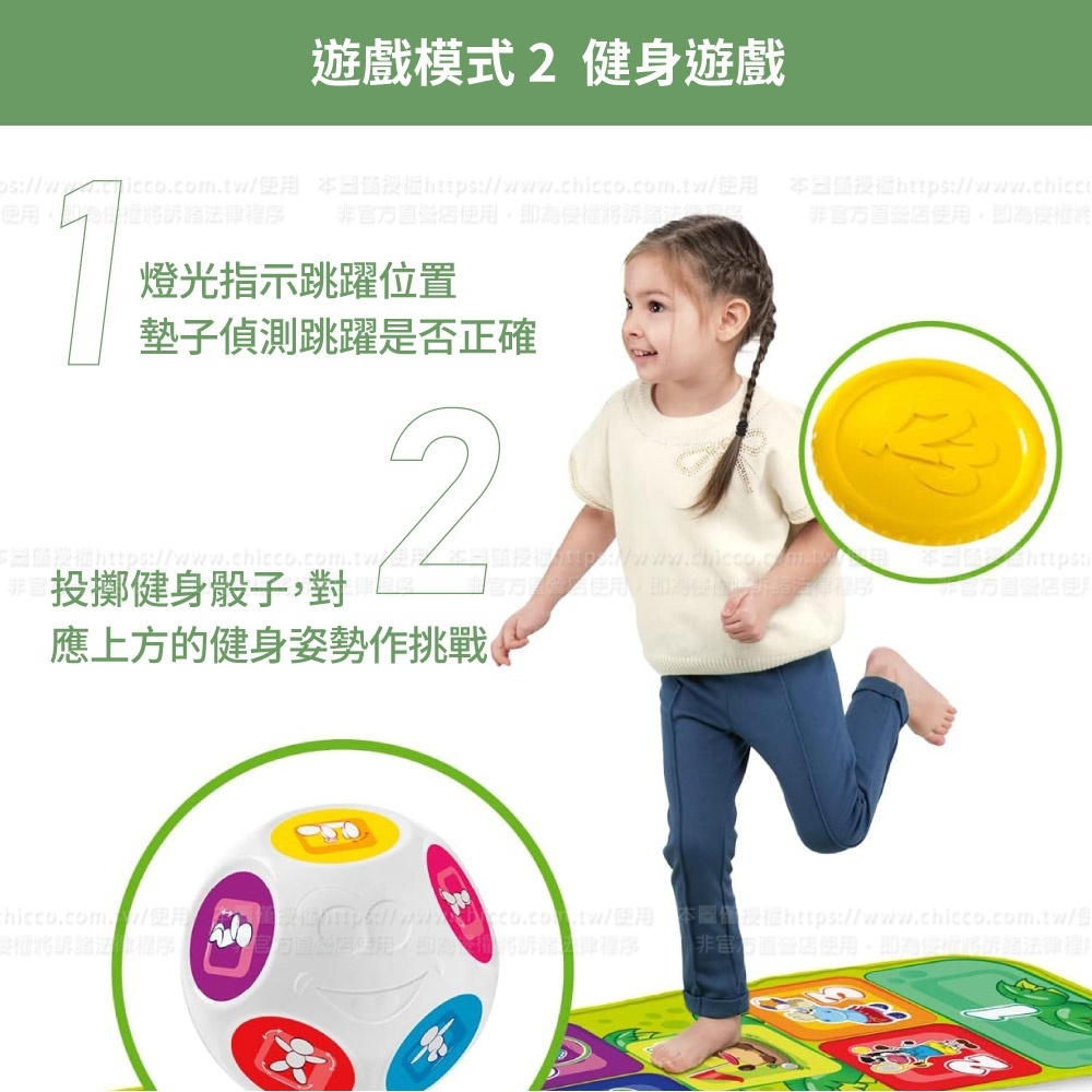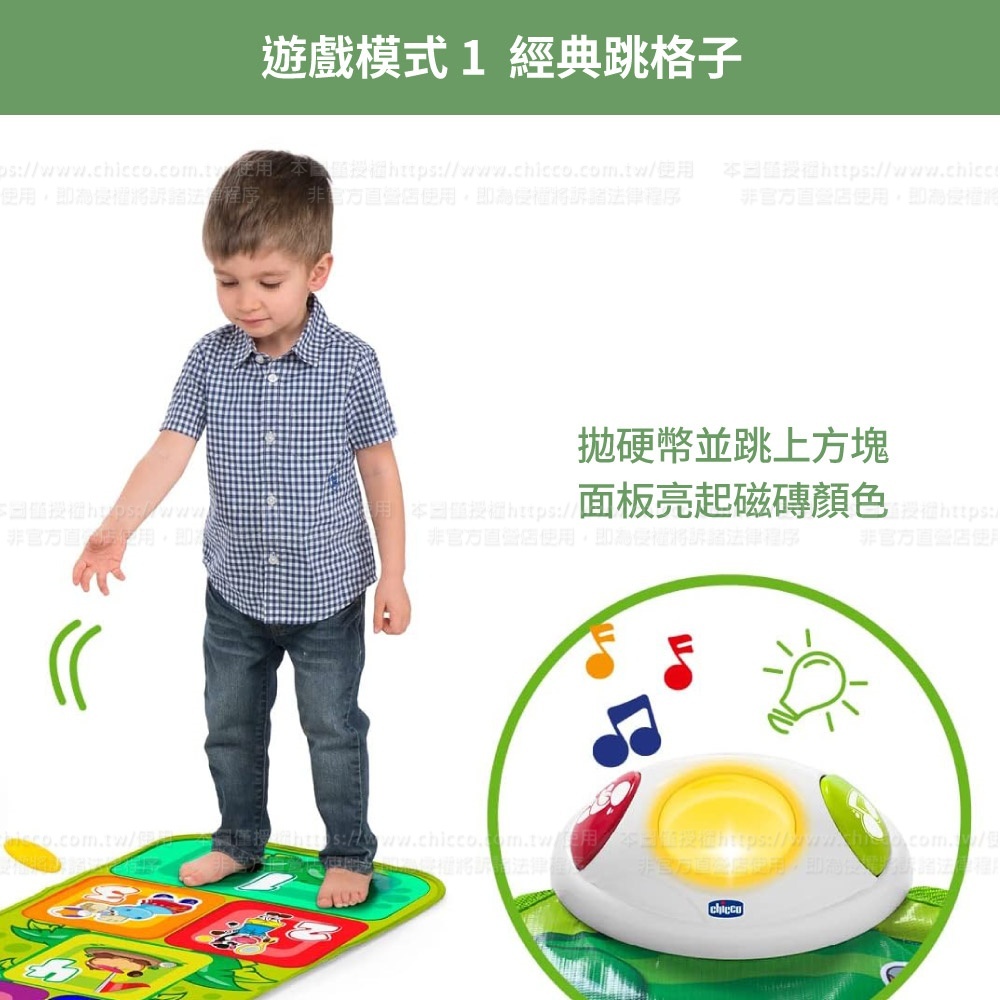 ●附有燈光和音樂的互動式電子遊戲墊,可感應器偵測孩子跳躍位置