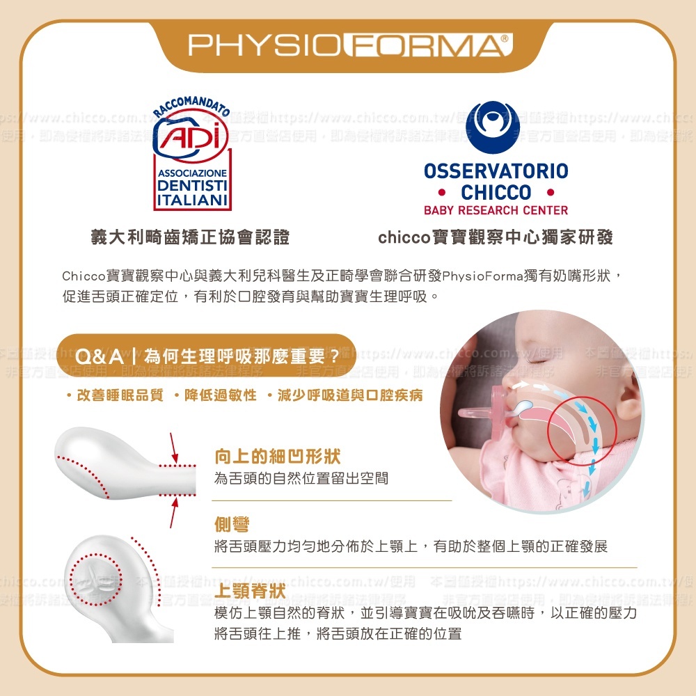●上顎脊狀拇指型設計,有助於將舌頭定位,保持呼吸道暢通