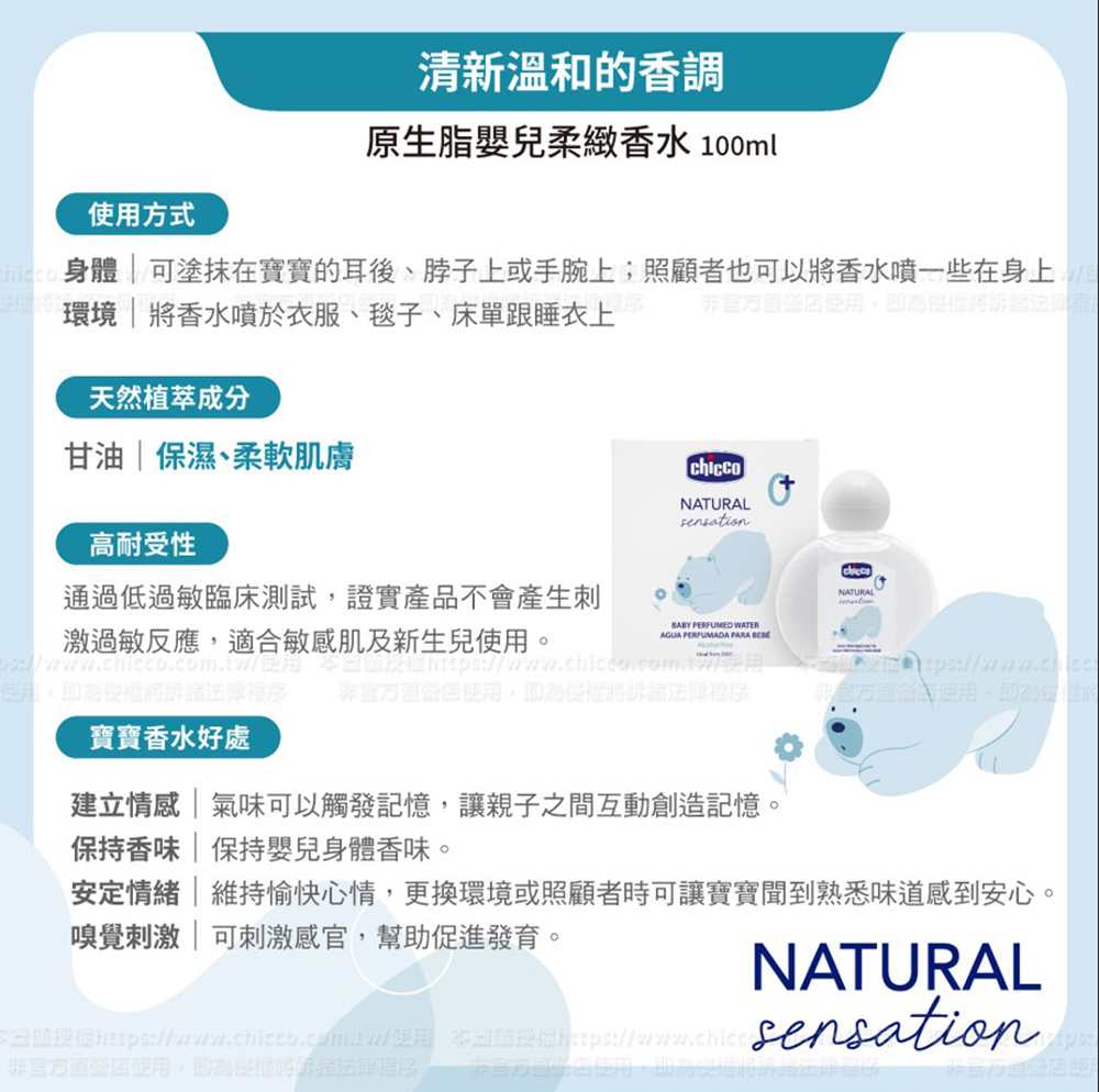●含甘油成分柔嫩肌膚,清新溫和有效消除身上異味,並避免過度刺激嬰兒嗅覺