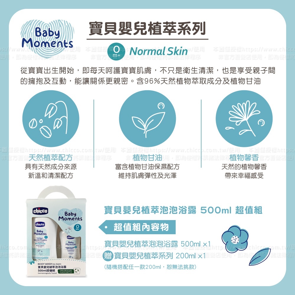 ●此超值組為 寶貝嬰兒植萃泡泡浴露500ml x1,隨機附贈寶貝嬰兒植萃系列200ml 乙瓶