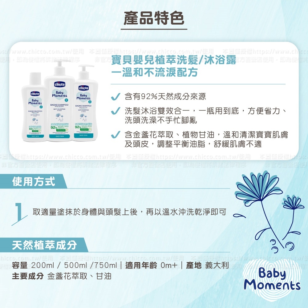 ●洗沐雙效合一,溫和清潔並滋潤寶寶細緻頭髮及肌膚,添加金盞花萃取,舒緩肌膚不適,溫和調理。天然的植物馨香,帶來使用後的幸福感受。溫和不刺激寶寶眼睛,讓寶寶享受洗澎澎的快樂氣氛。
