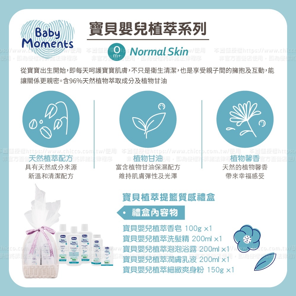●寶貝嬰兒植萃系列,能溫和清潔及滋潤寶貝肌膚,不同的組合搭配,典雅大方的設計,是送禮最佳選擇。