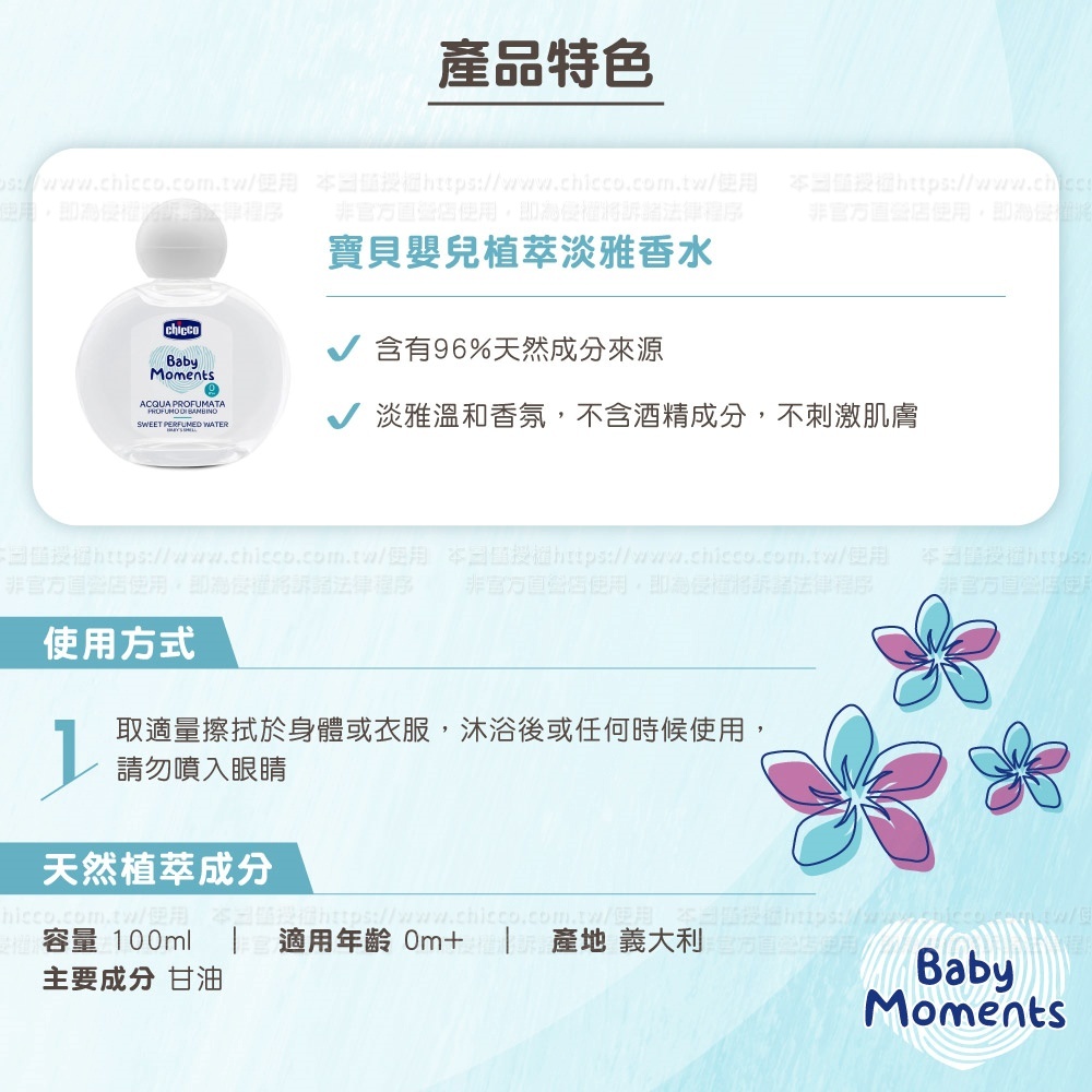●專為寶寶設計的香水,淡雅溫和香氛,不含酒精成分,不刺激肌膚