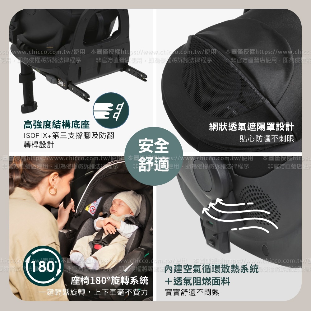 ●可另購I-SIZE 旋轉底座搭配isofix安裝,也可獨立汽車3點式安全帶安裝,增加使用靈活性。