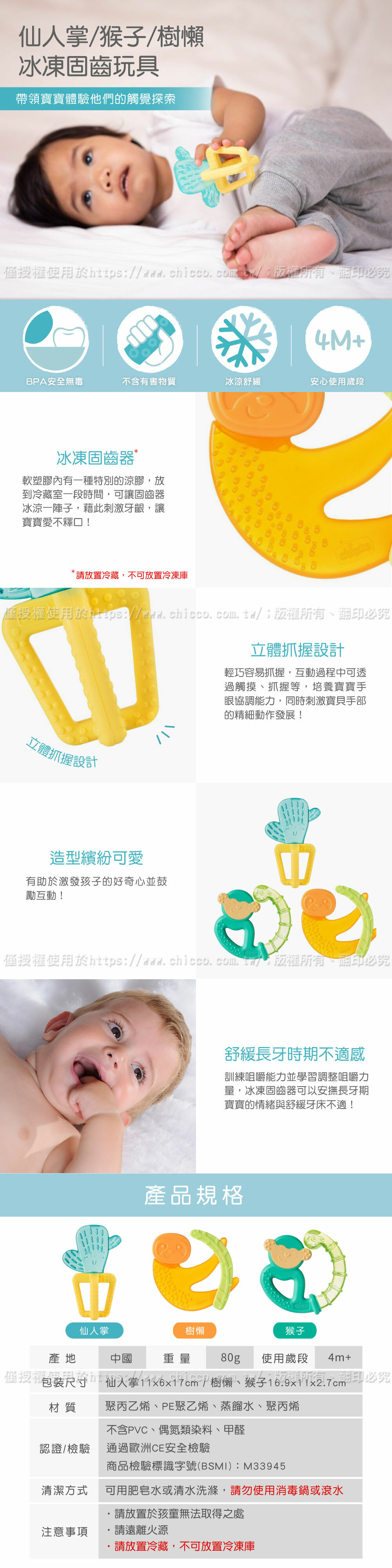 ●寶寶在長牙階段,藉由冰凍固齒器可刺激牙齦,讓牙齦感到清涼。