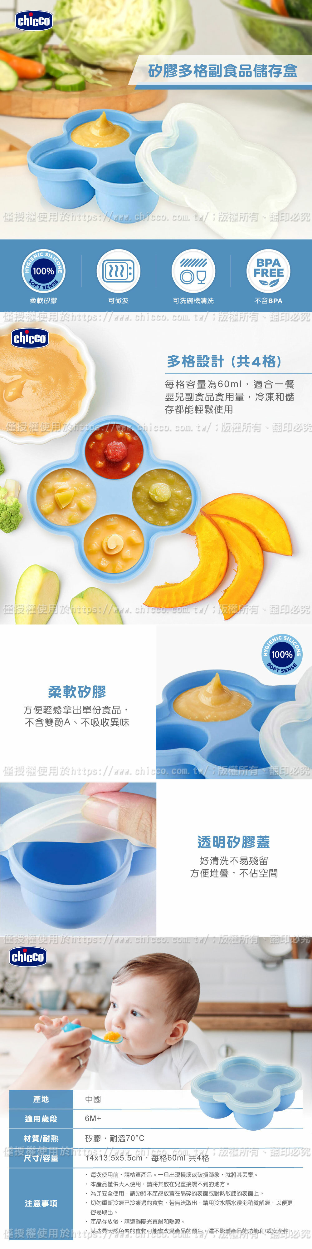 ●多格設計,每格容量為 60ML,約一餐嬰兒副食品食用量
