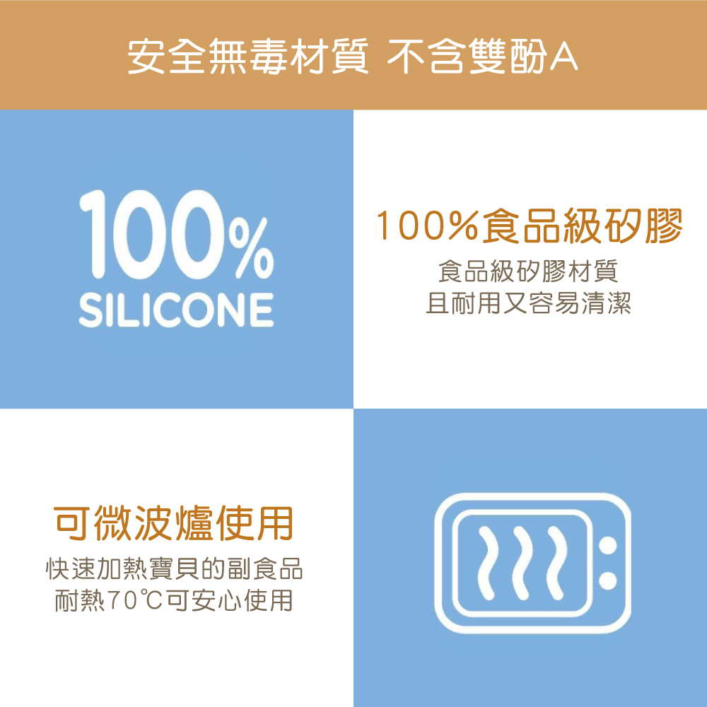 ●耐熱溫度為70度,餵食前請務必檢查食物溫度,為了防止燙傷的危險