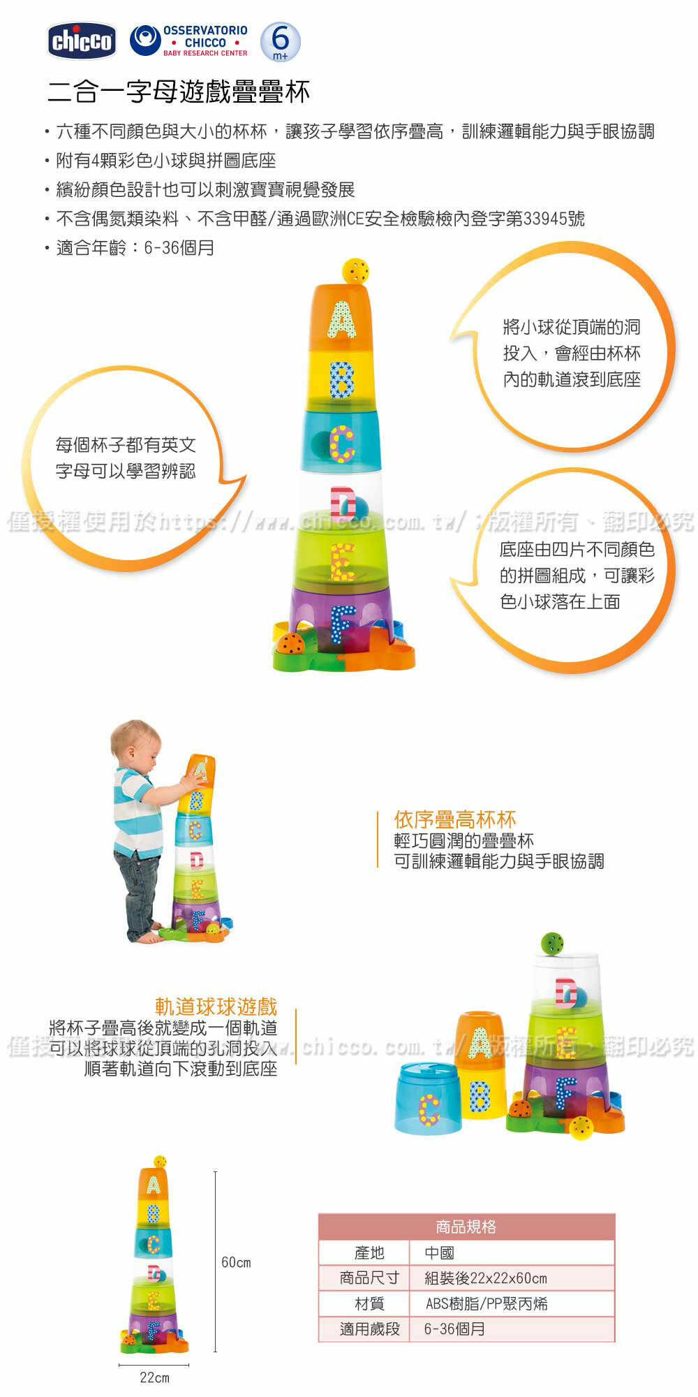 ●六種不同顏色與大小的杯杯,讓孩子學習依序疊高,訓練邏輯能力與手眼協調