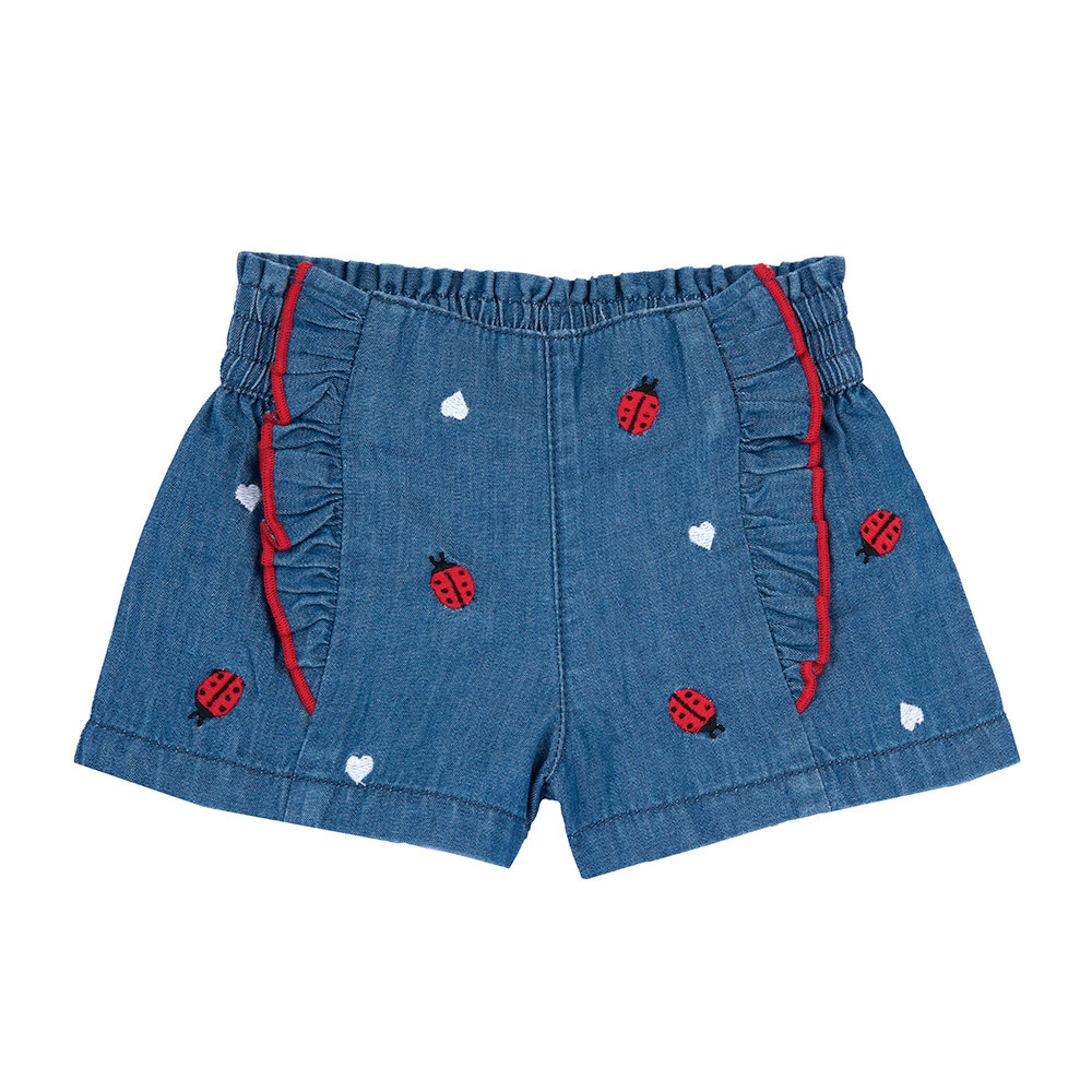 圈圈瓢蟲-刺繡剪接荷葉短褲