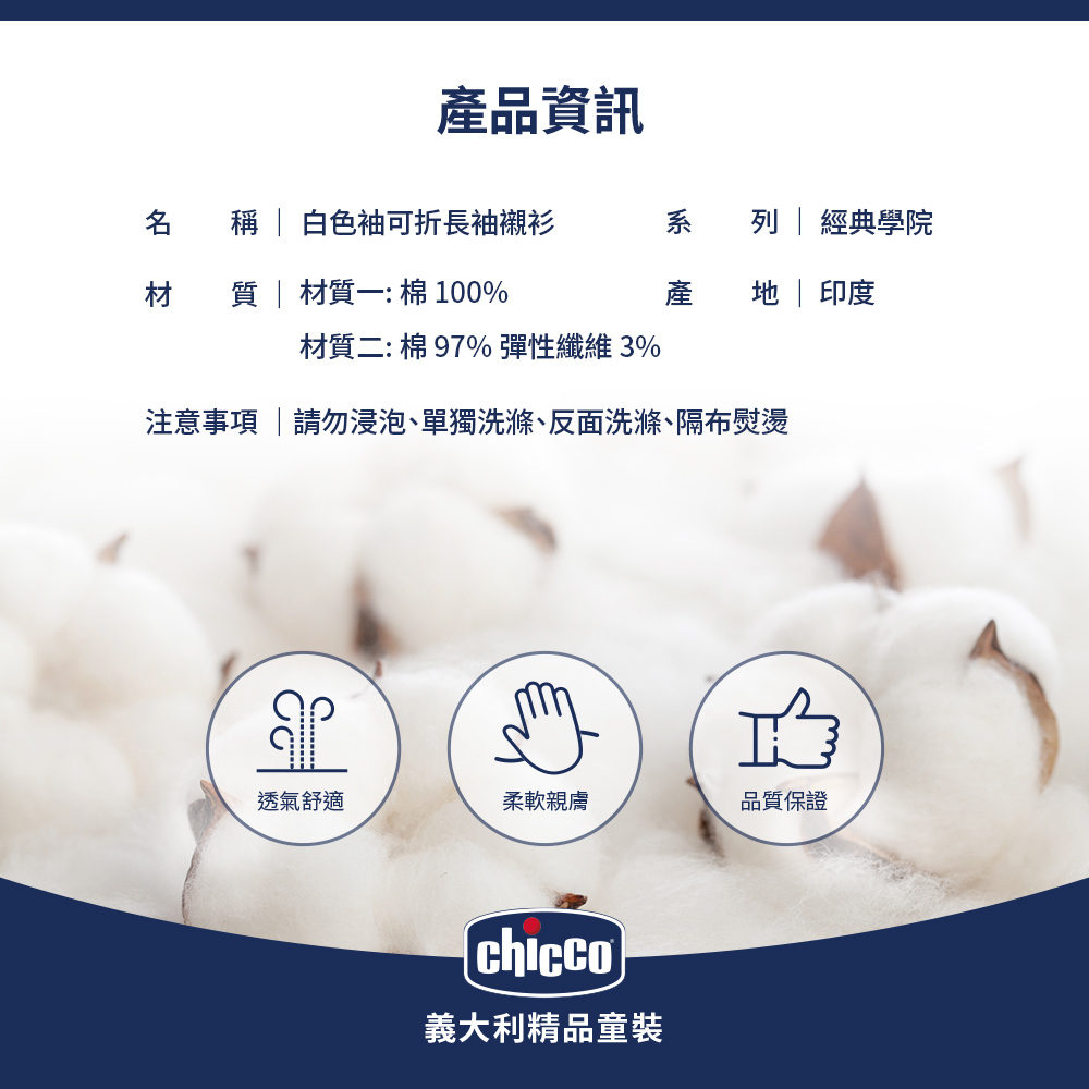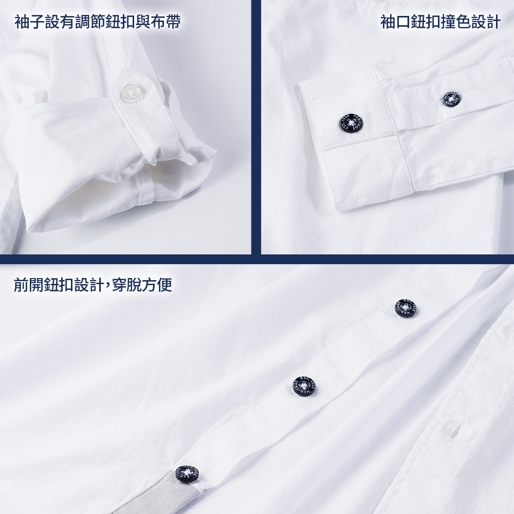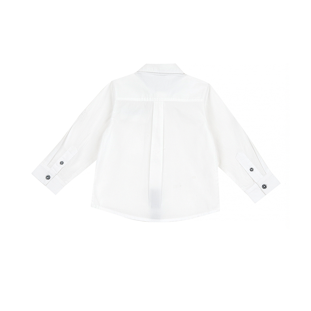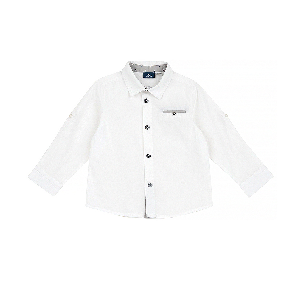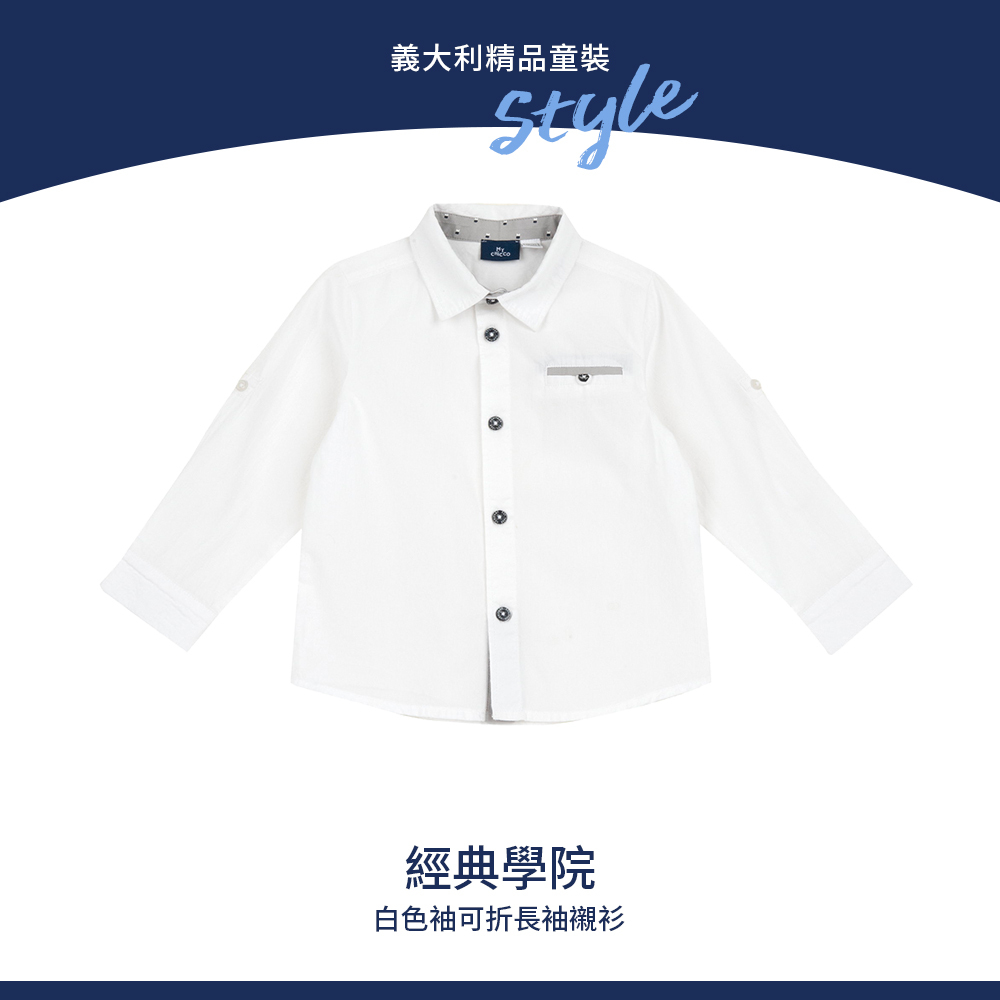 經典學院-白色袖可折長袖襯衫
