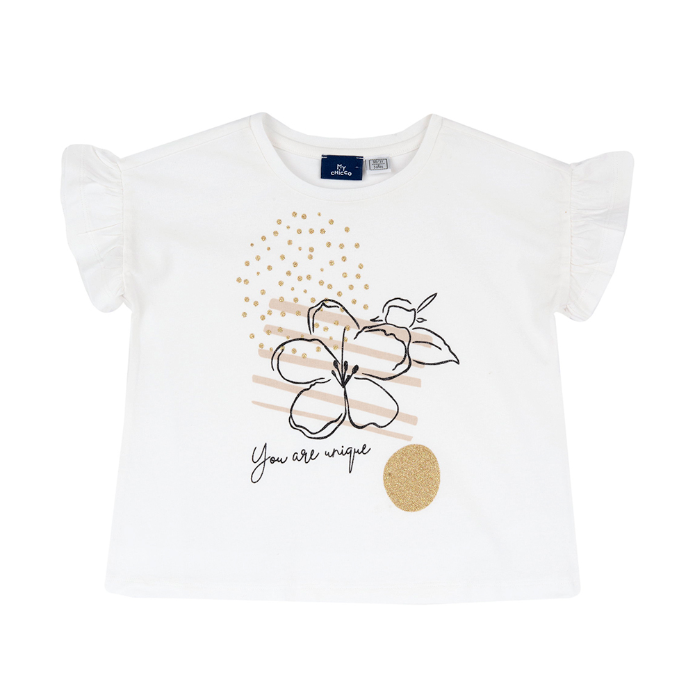沙漠風情-印花朵金點荷葉袖上衣