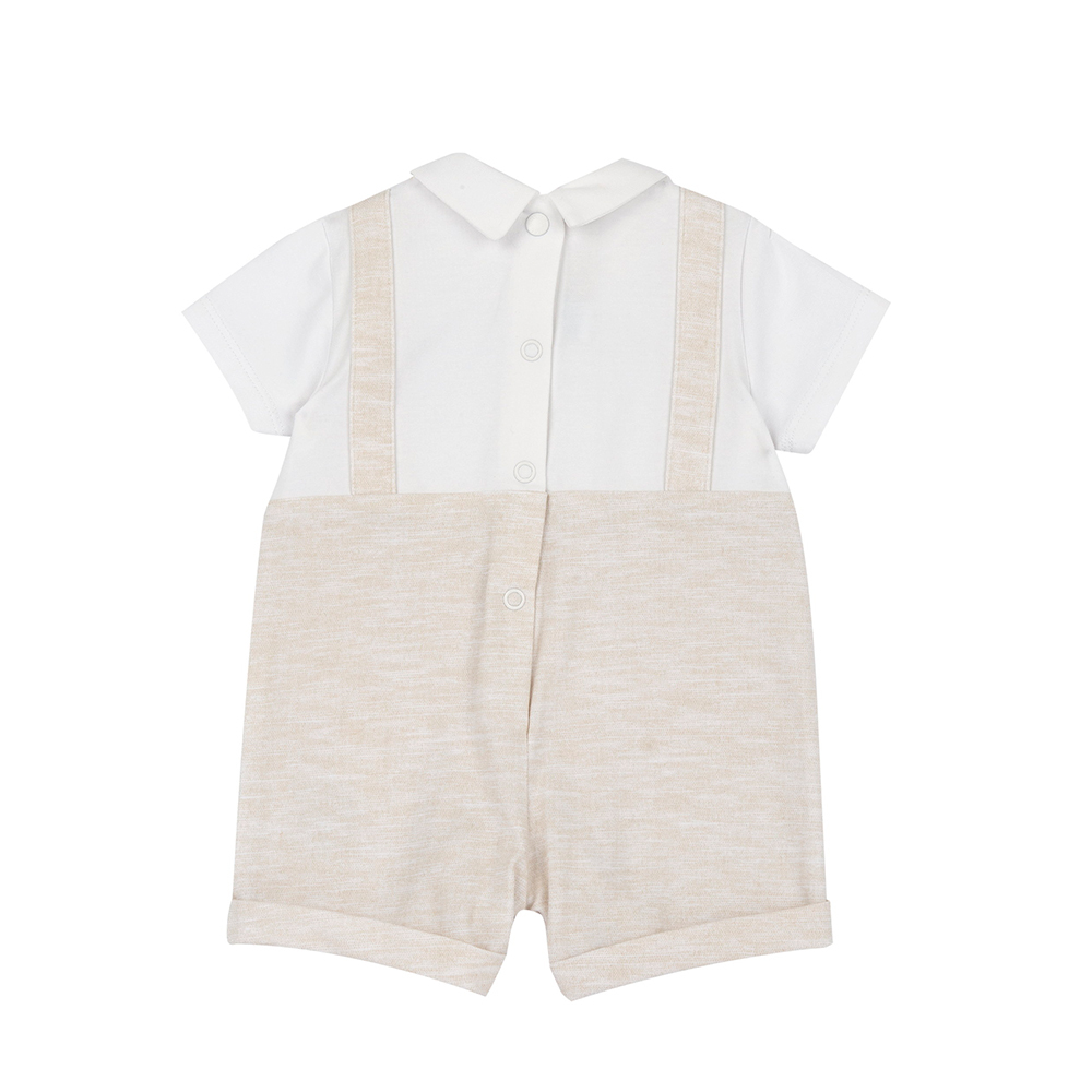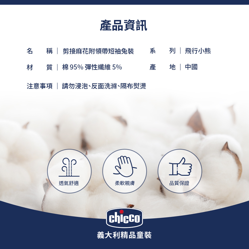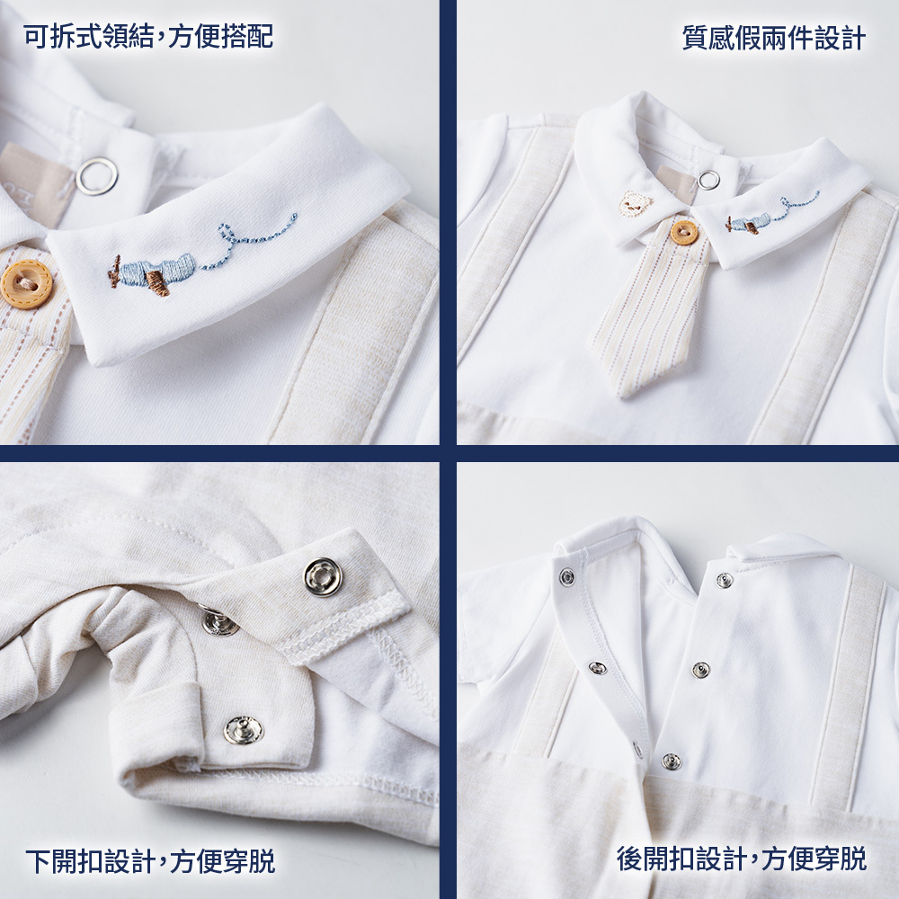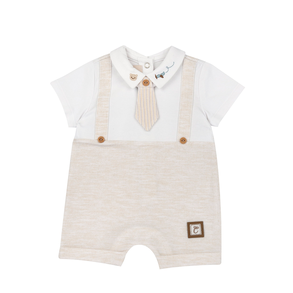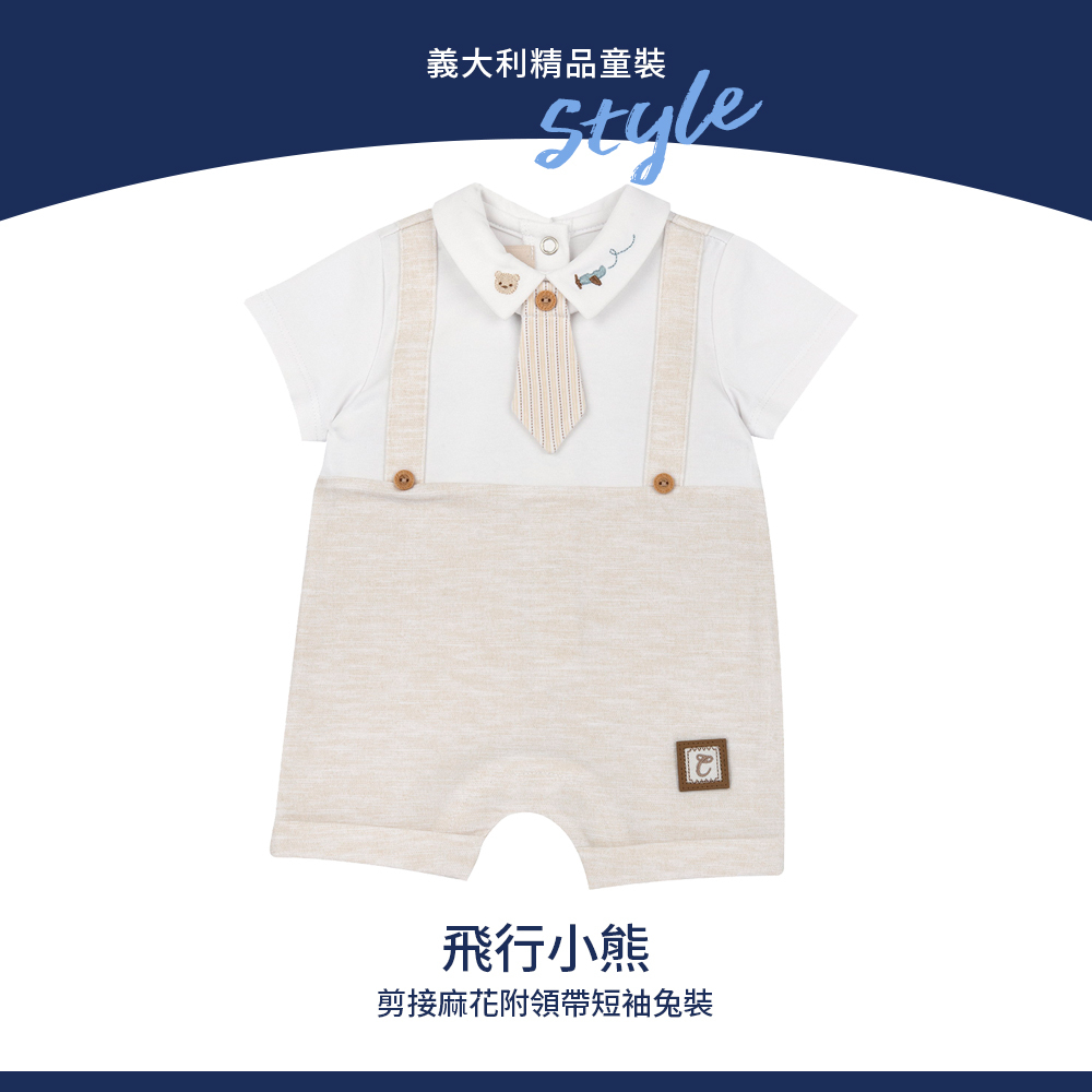 飛行小熊-剪接麻花附領帶短袖兔裝