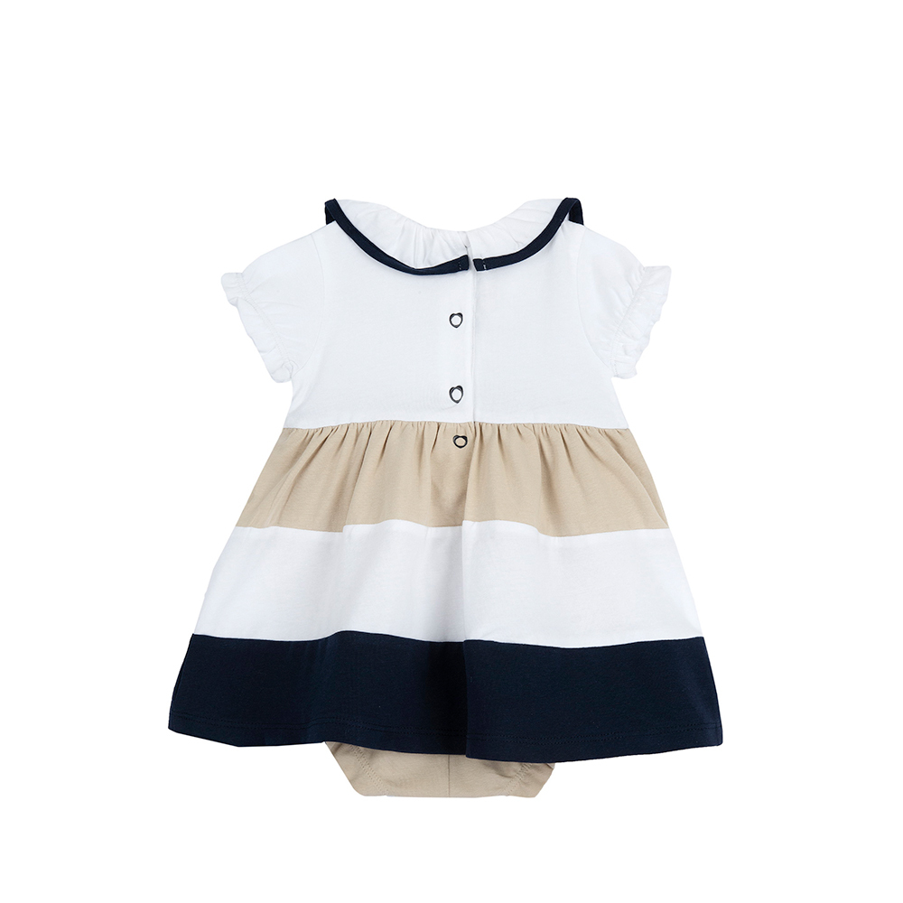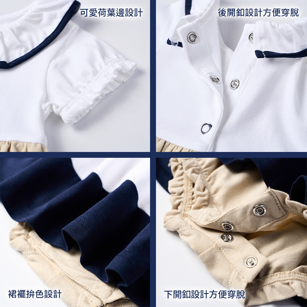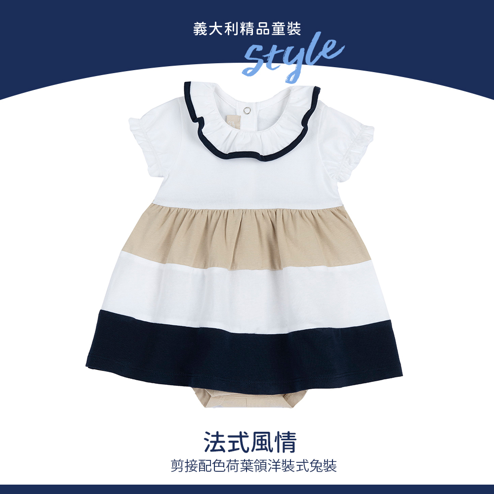 法式風情-剪接配色荷葉領洋裝式兔裝