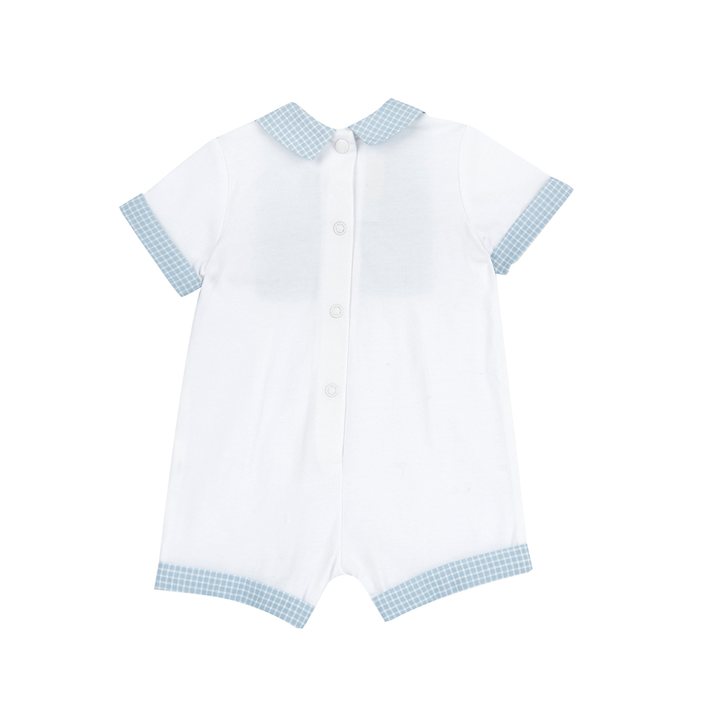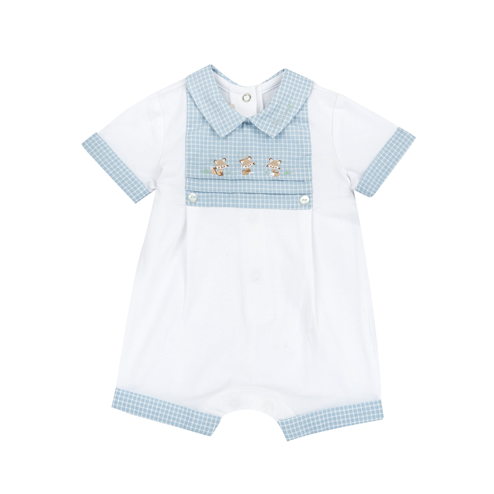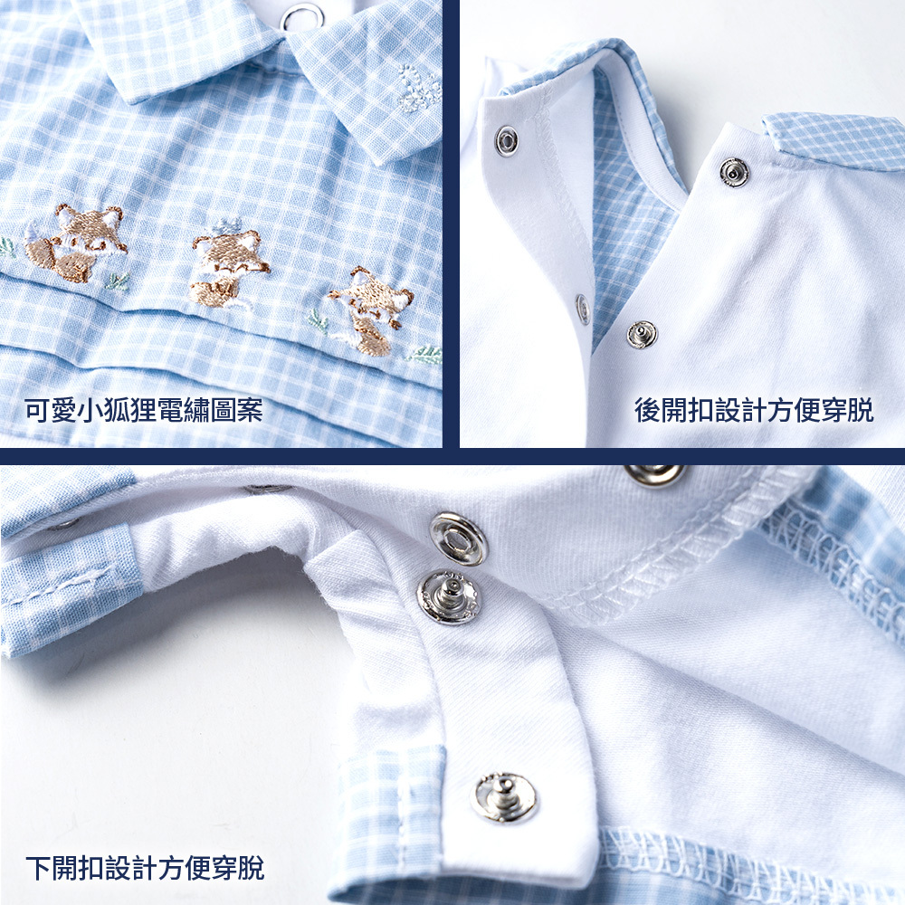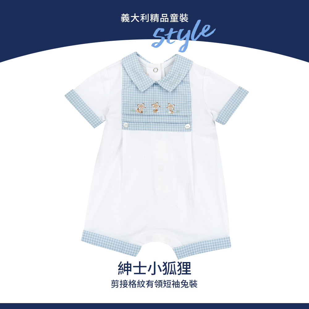 紳士小狐狸-剪接格紋有領短袖兔裝