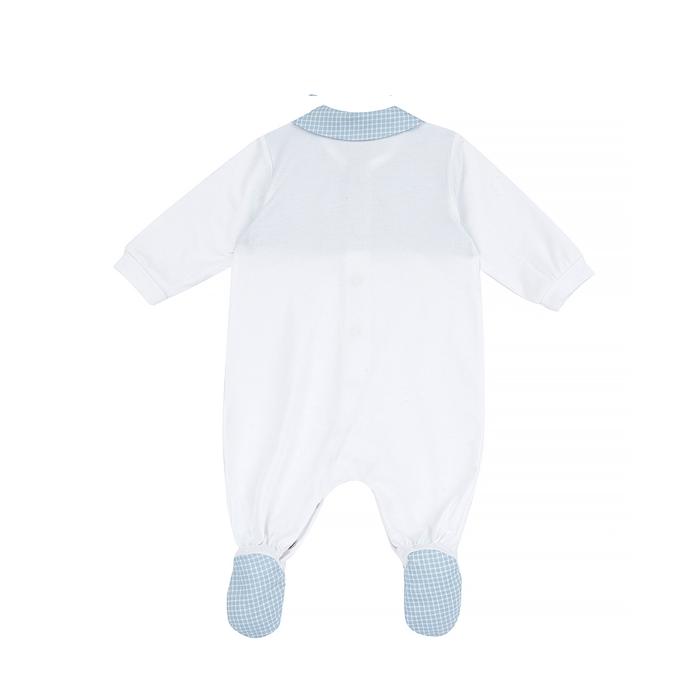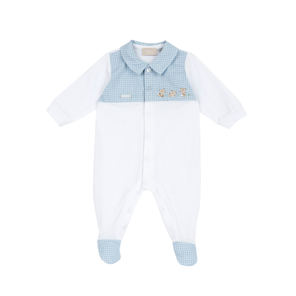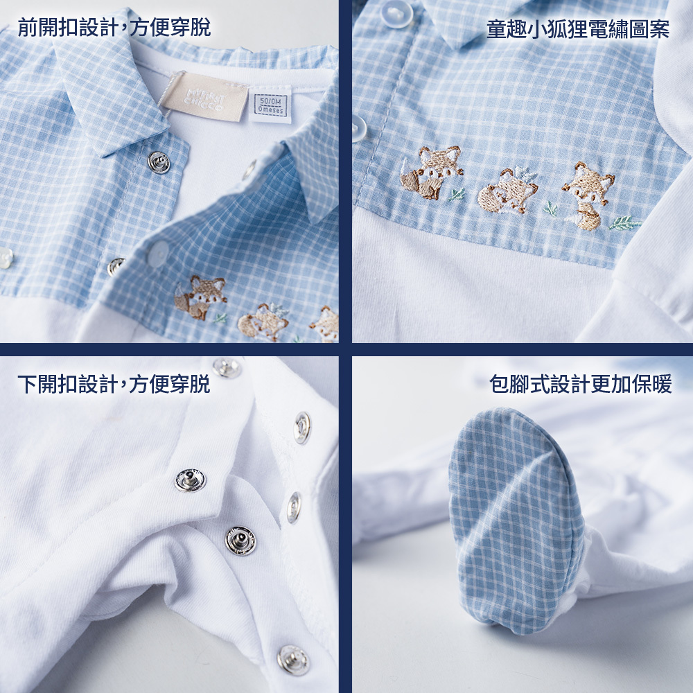 紳士小狐狸-剪接格紋有領前開長袖兔裝