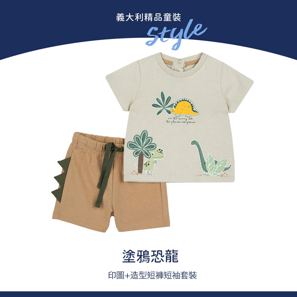 塗鴉恐龍-印圖+滿版短褲短袖套裝