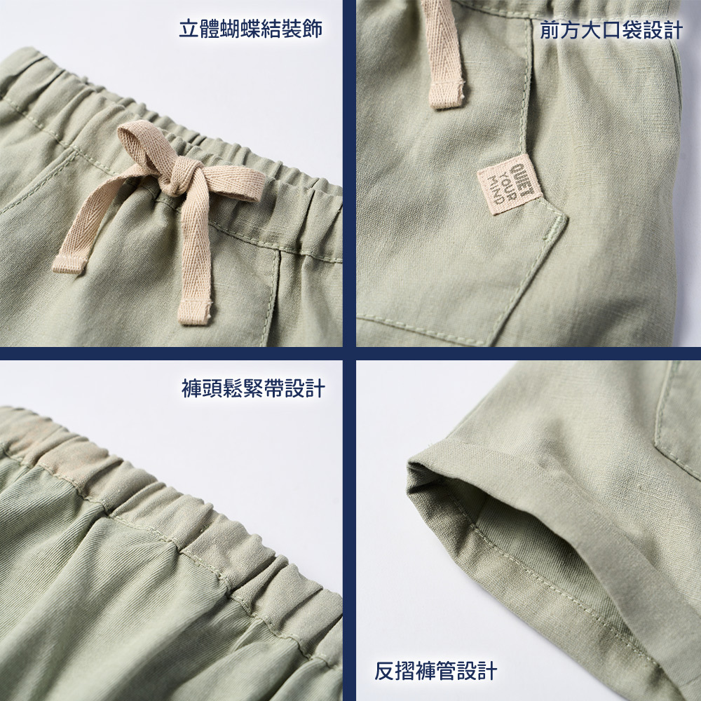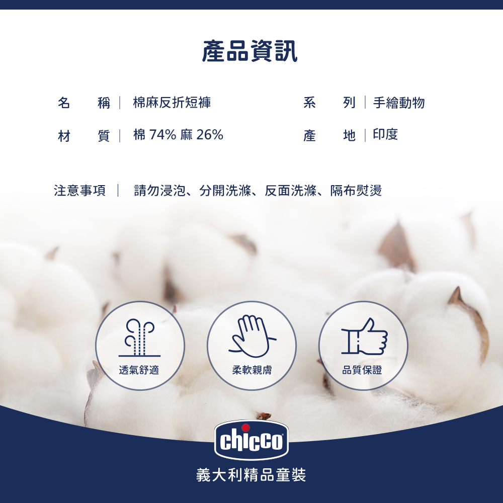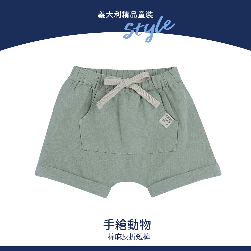 手繪動物-棉麻反折短褲
