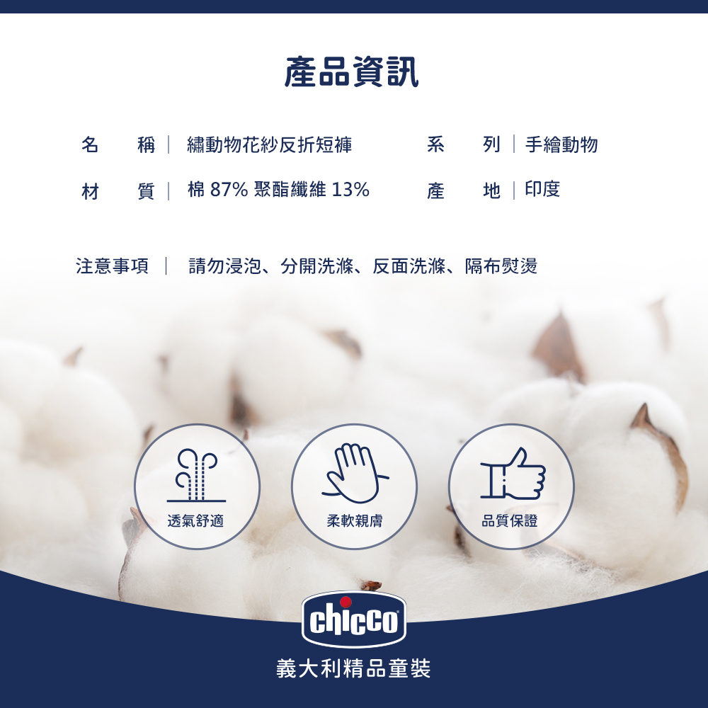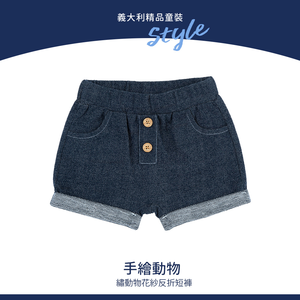 手繪動物-繡動物花紗反折短褲