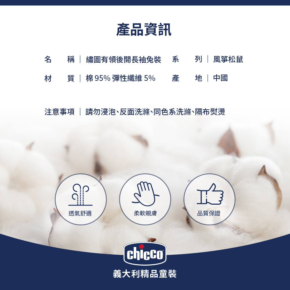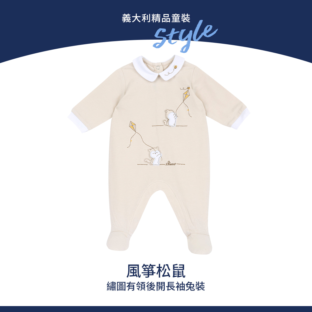 風箏松鼠-繡圖有領後開長袖兔裝