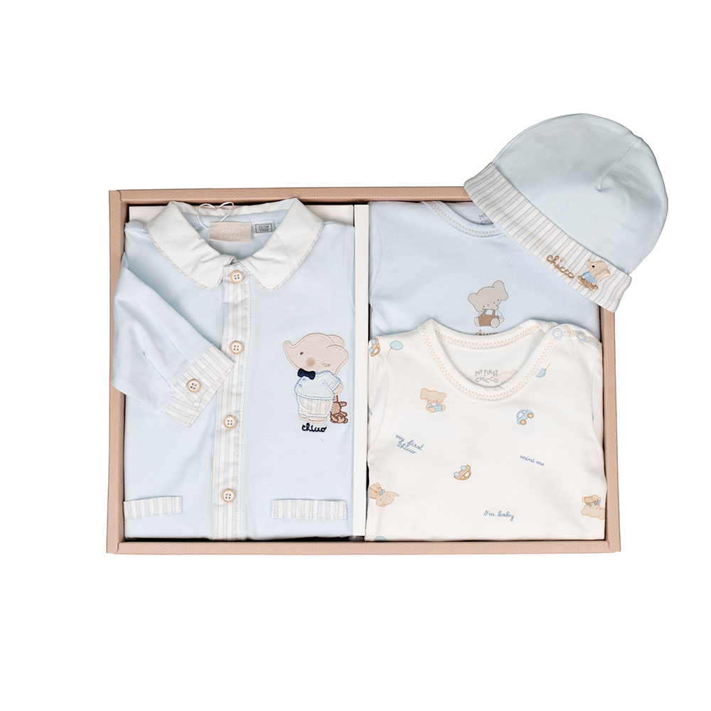 ●小象校園長袖兔裝+帽子+連身衣彌月禮盒(四件組| 56公分