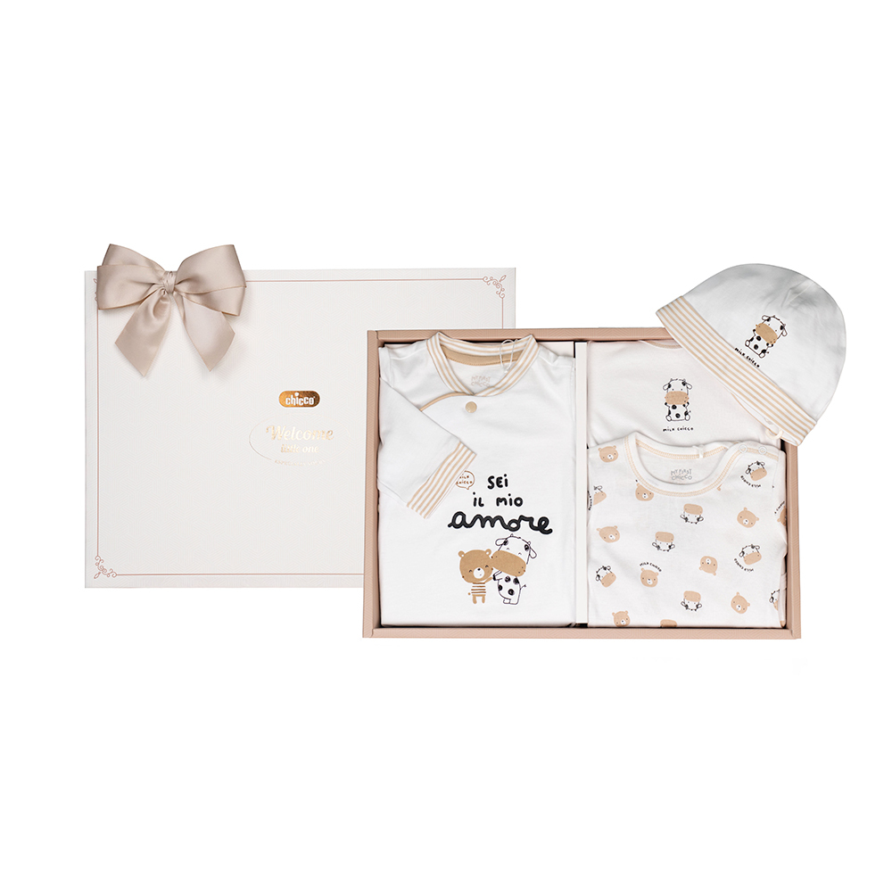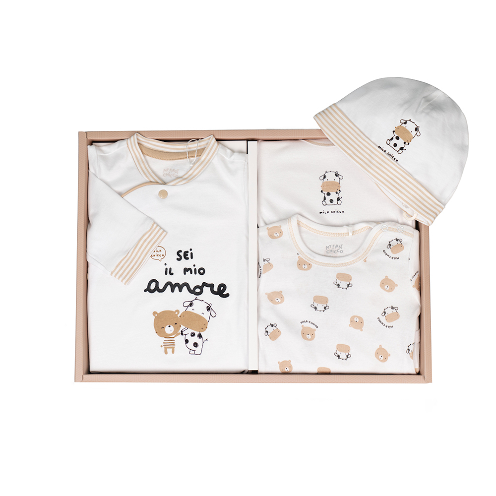 ●MILK小乳牛長袖兔裝+帽子+連身衣彌月禮盒(四件組)| 56公分