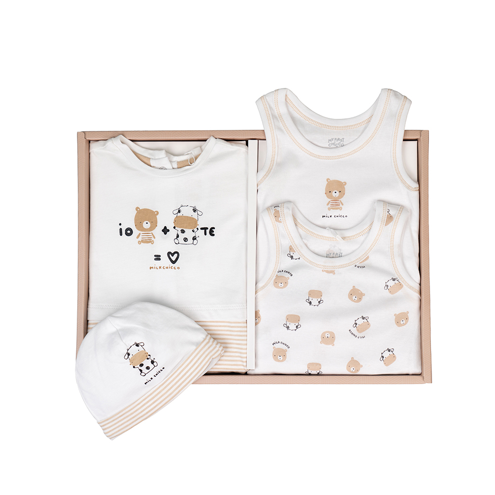 ●MILK小乳牛短袖兔裝+帽子+連身衣彌月禮盒(四件組) | 68公分