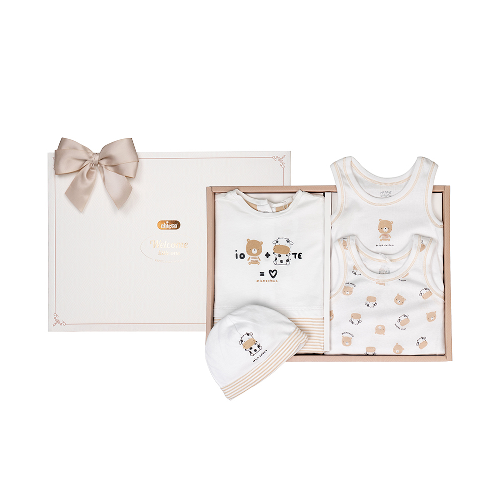●MILK小乳牛短袖兔裝+帽子+連身衣彌月禮盒(四件組) | 62公分