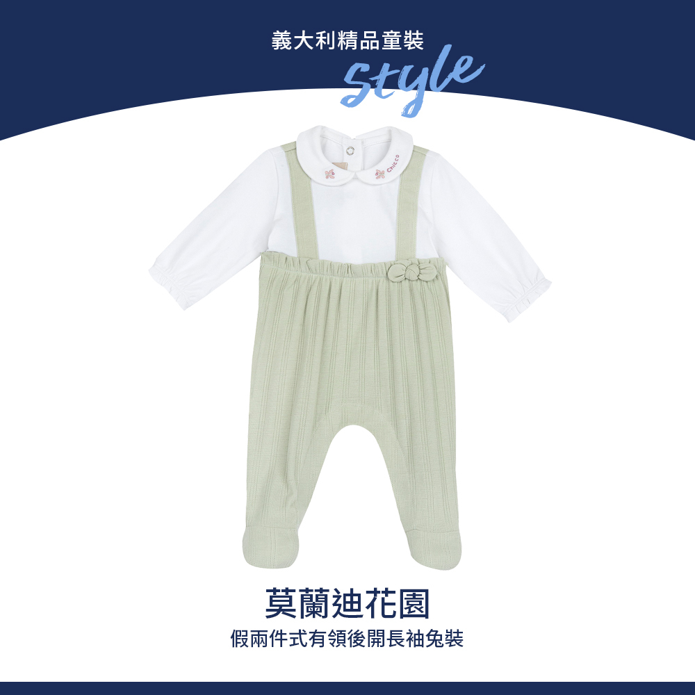 莫蘭迪花園-假兩件式有領後開長袖兔裝