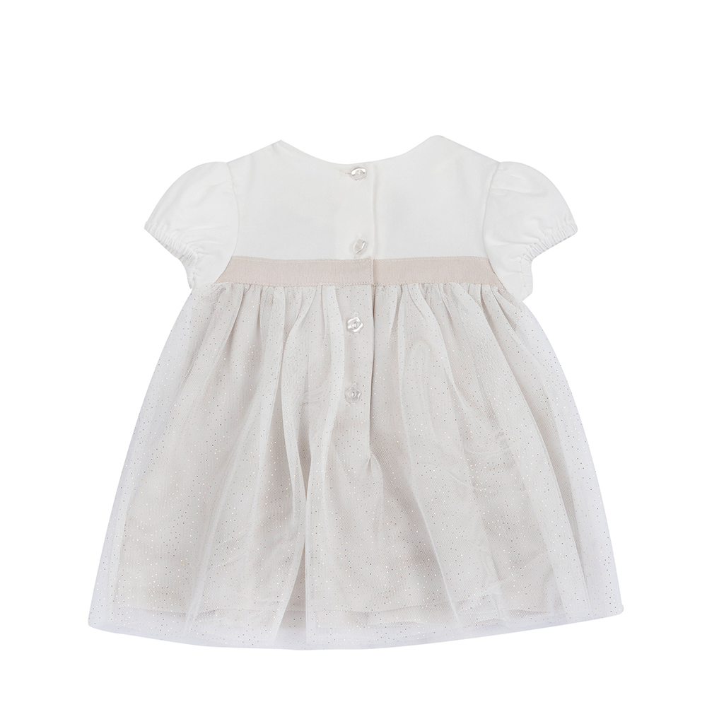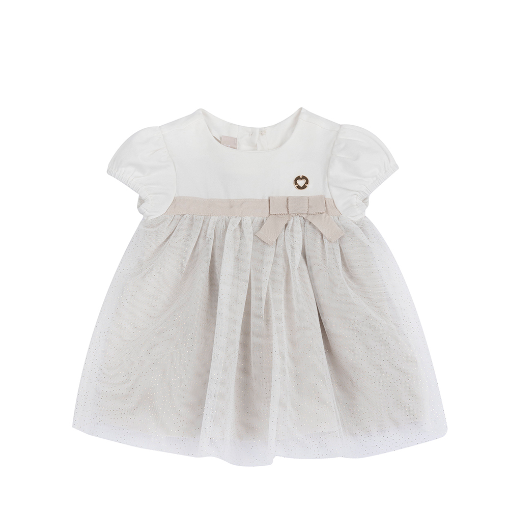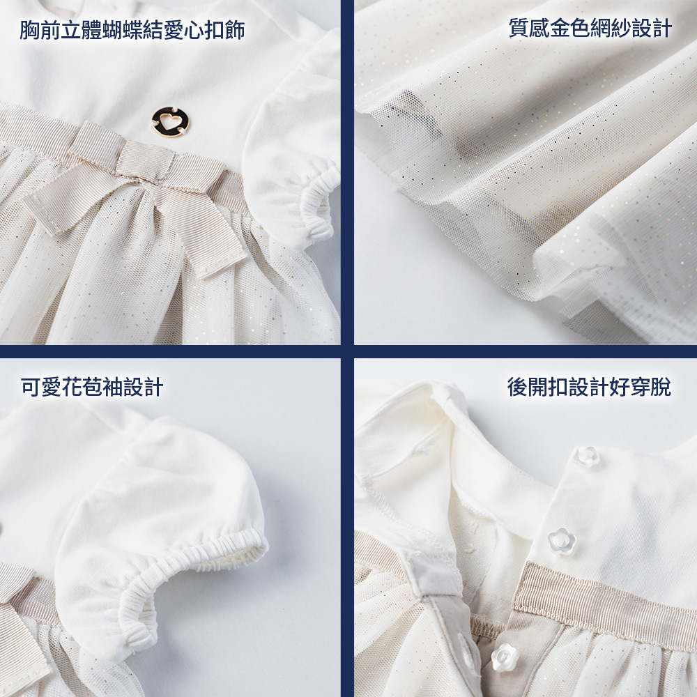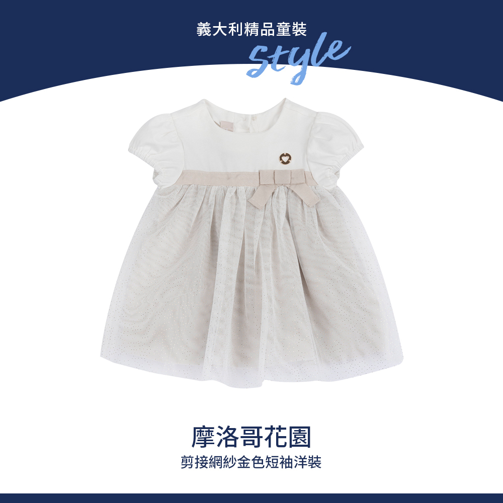 摩洛哥花園-剪接網紗金色短袖洋裝