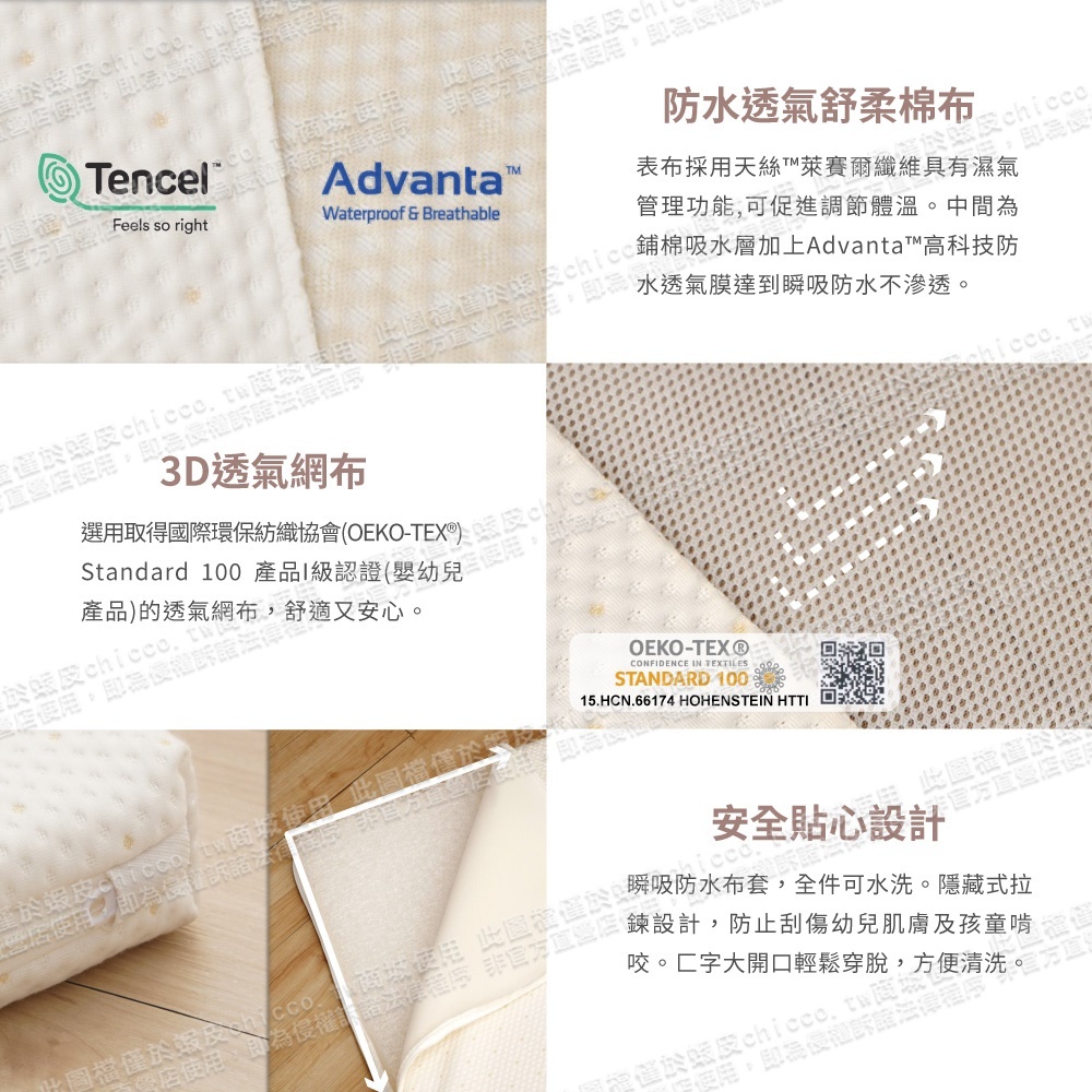 (1)兩面皆可使用,一面為透氣防水保護墊,另一面為經由OEKO-TEX認證的3D透氣網布