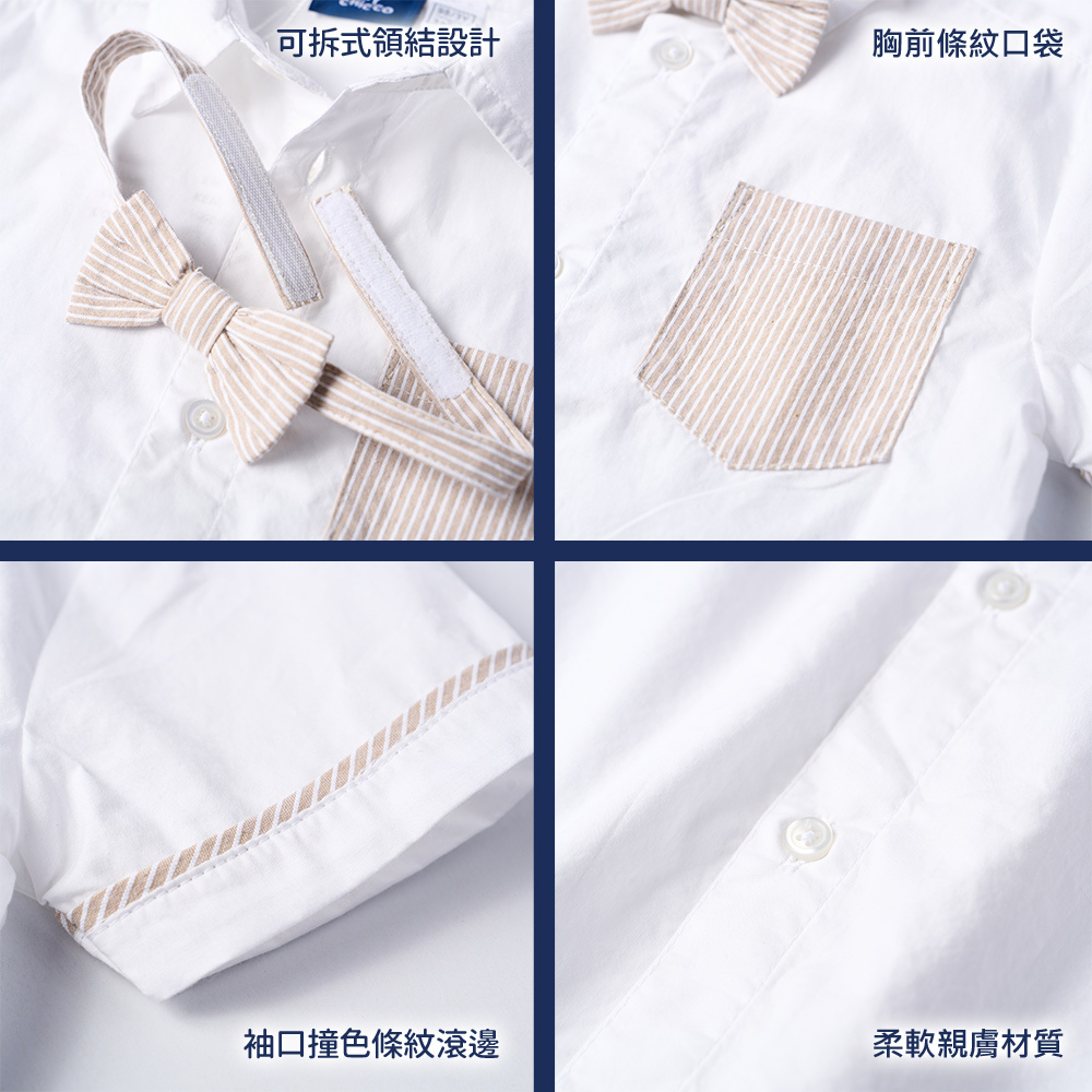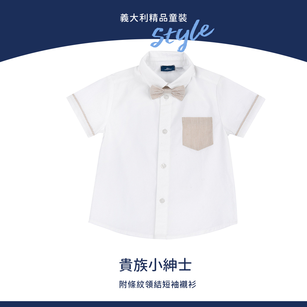 貴族小紳士-附條紋領結短袖襯衫