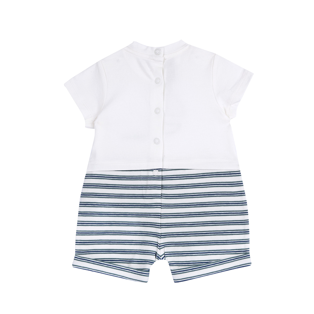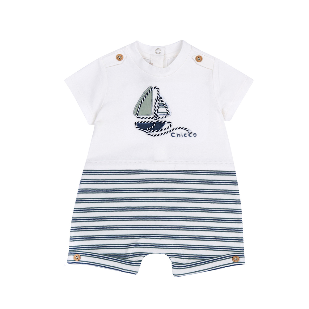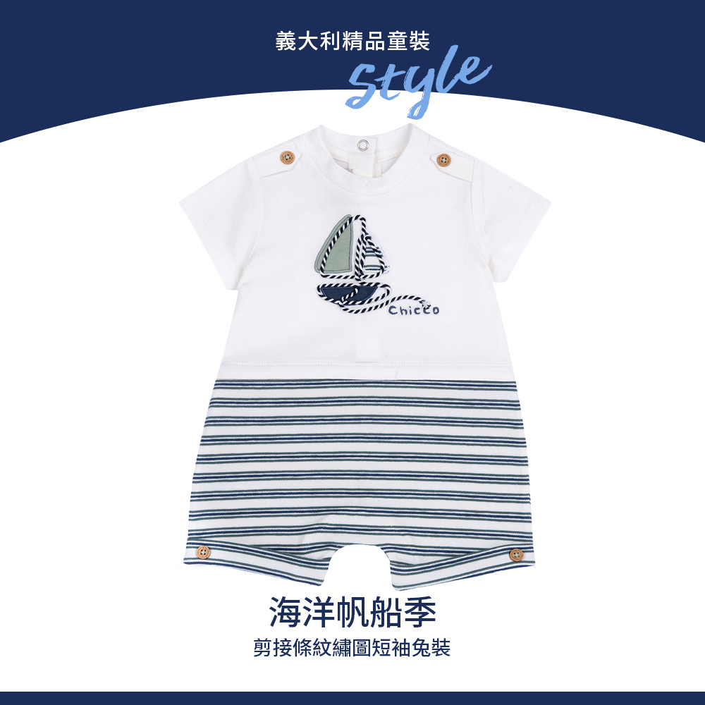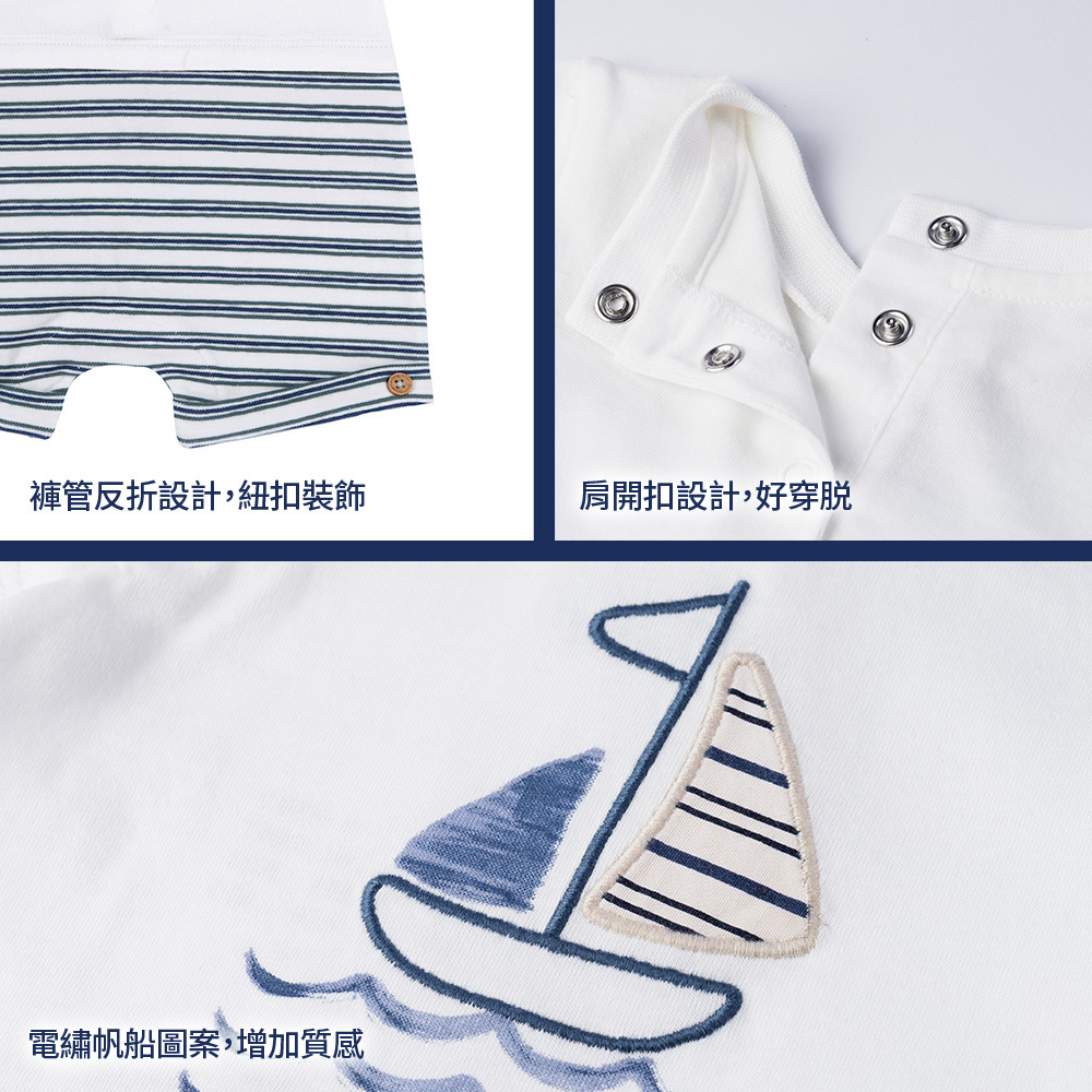 海洋帆船季-剪接條紋繡圖短袖兔裝