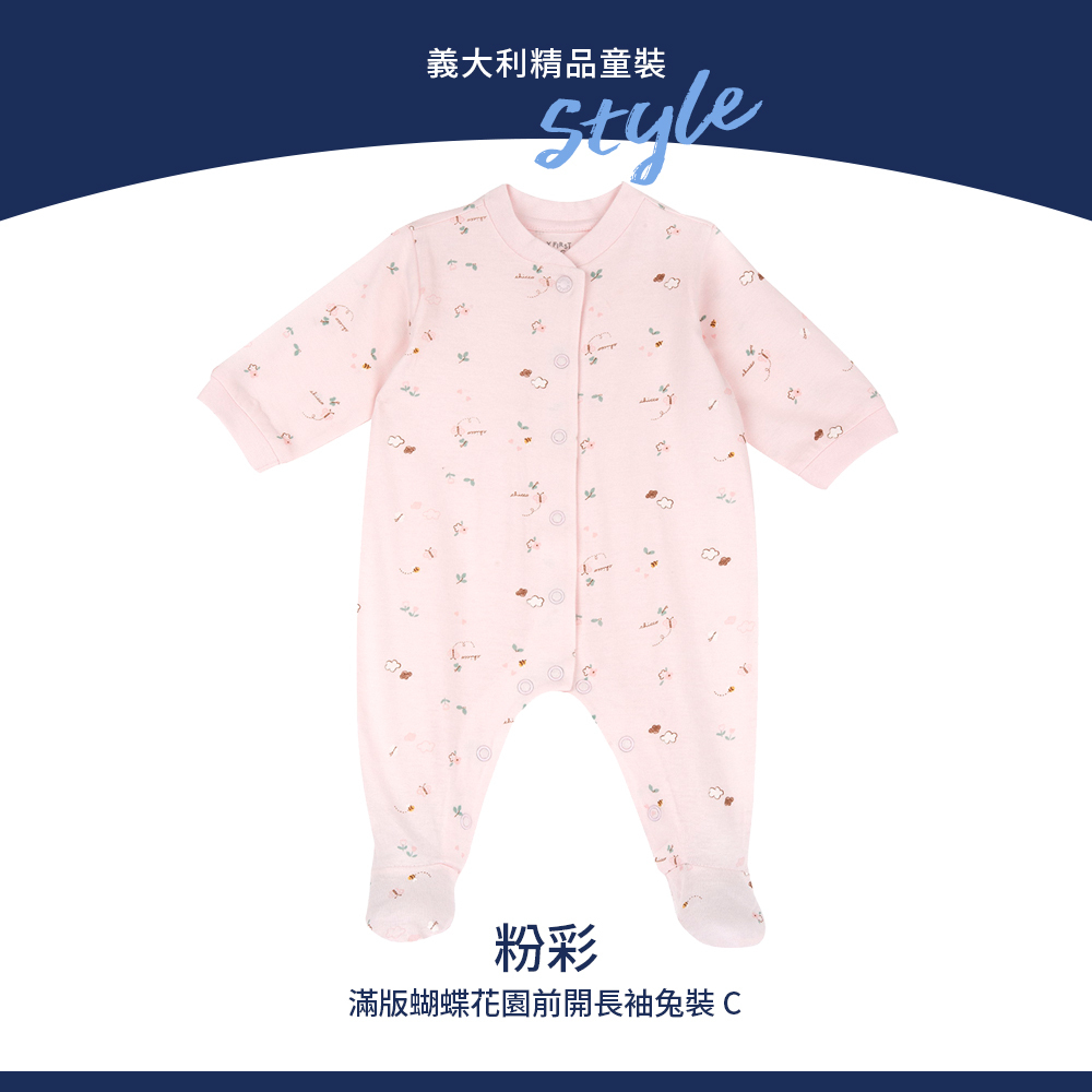 粉彩-滿版蝴蝶花園前開長袖兔裝 C