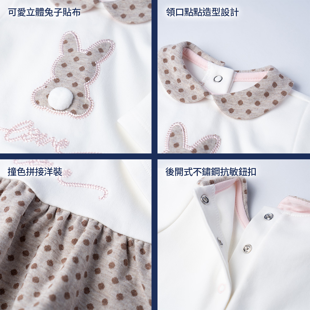 粉紅邦妮-剪接提織點點長袖洋裝