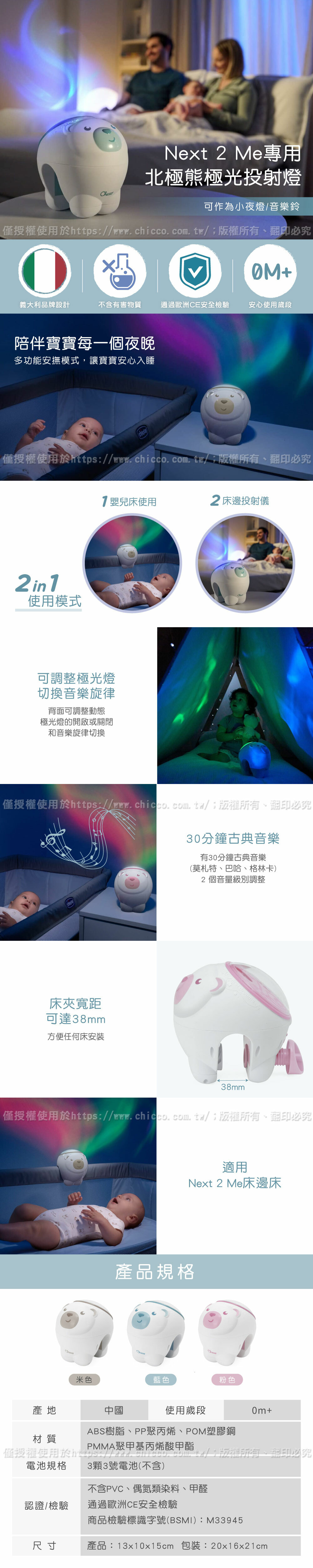 ★二種模式 嬰兒床使用、床邊投射儀