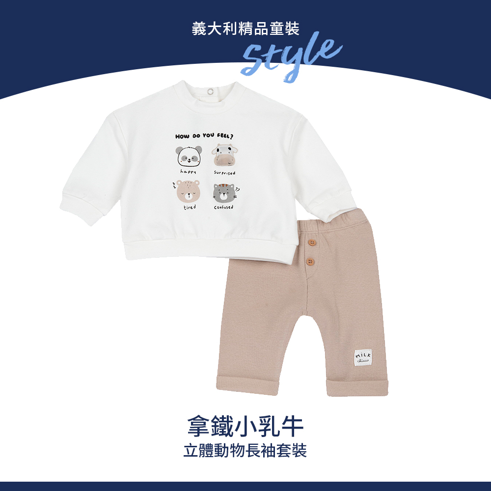 拿鐵小乳牛-印+立體動物長袖套裝