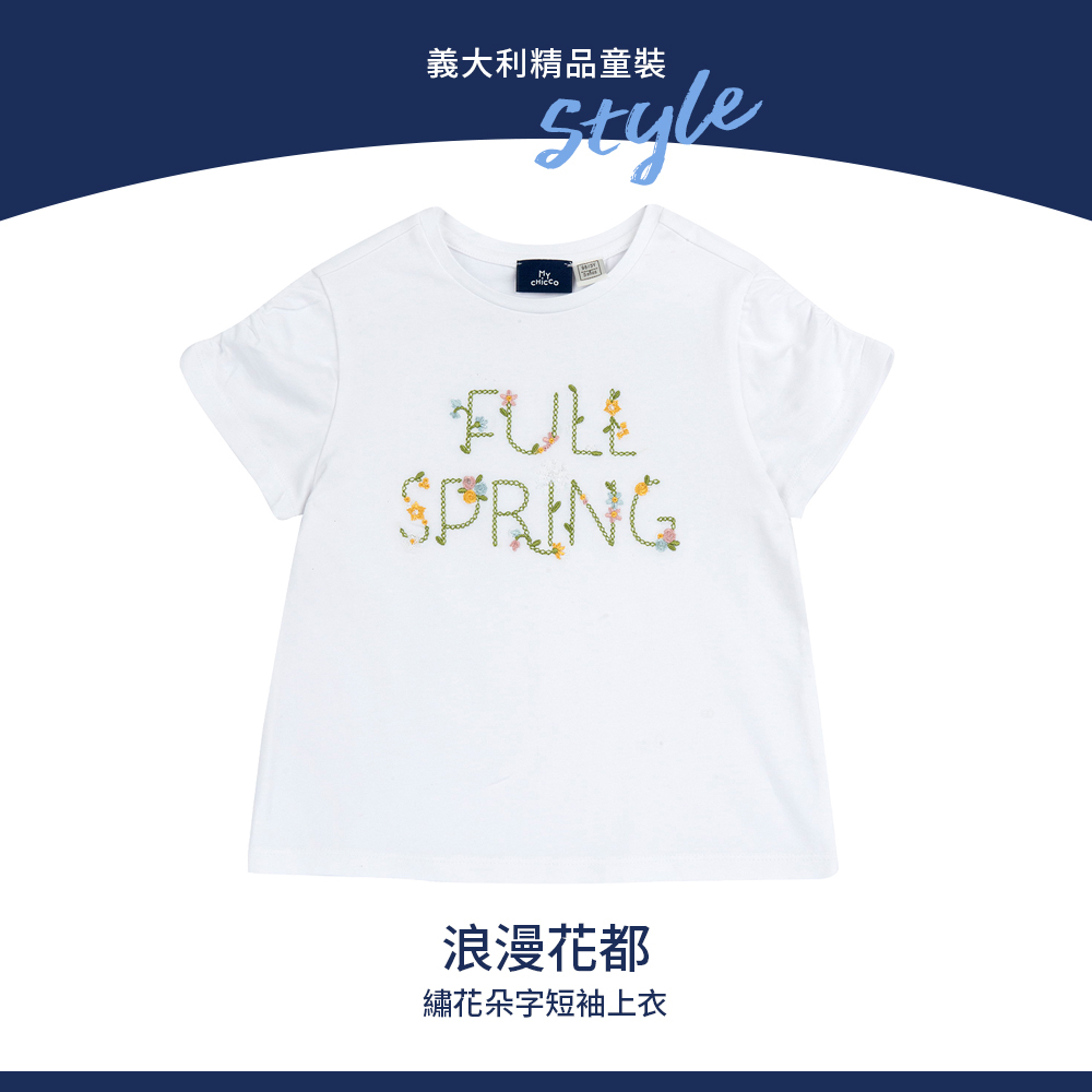 浪漫花都-繡花朵字短袖上衣
