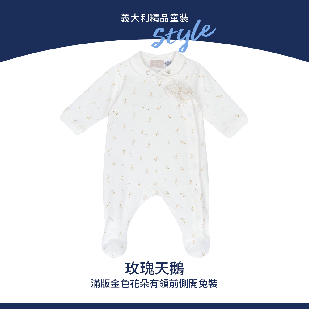 玫瑰天鵝-滿版金色花朵有領前側開兔裝