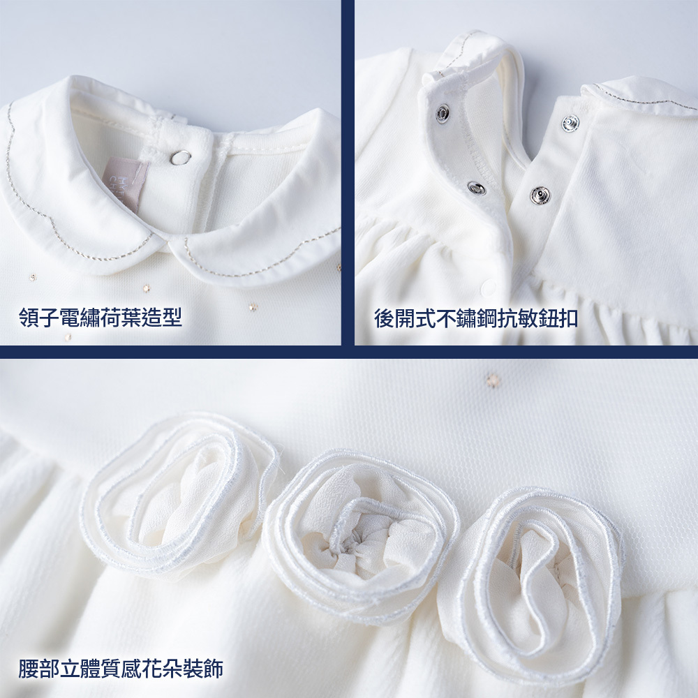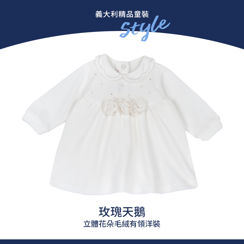 玫瑰天鵝-立體花朵剪毛絨有領洋裝